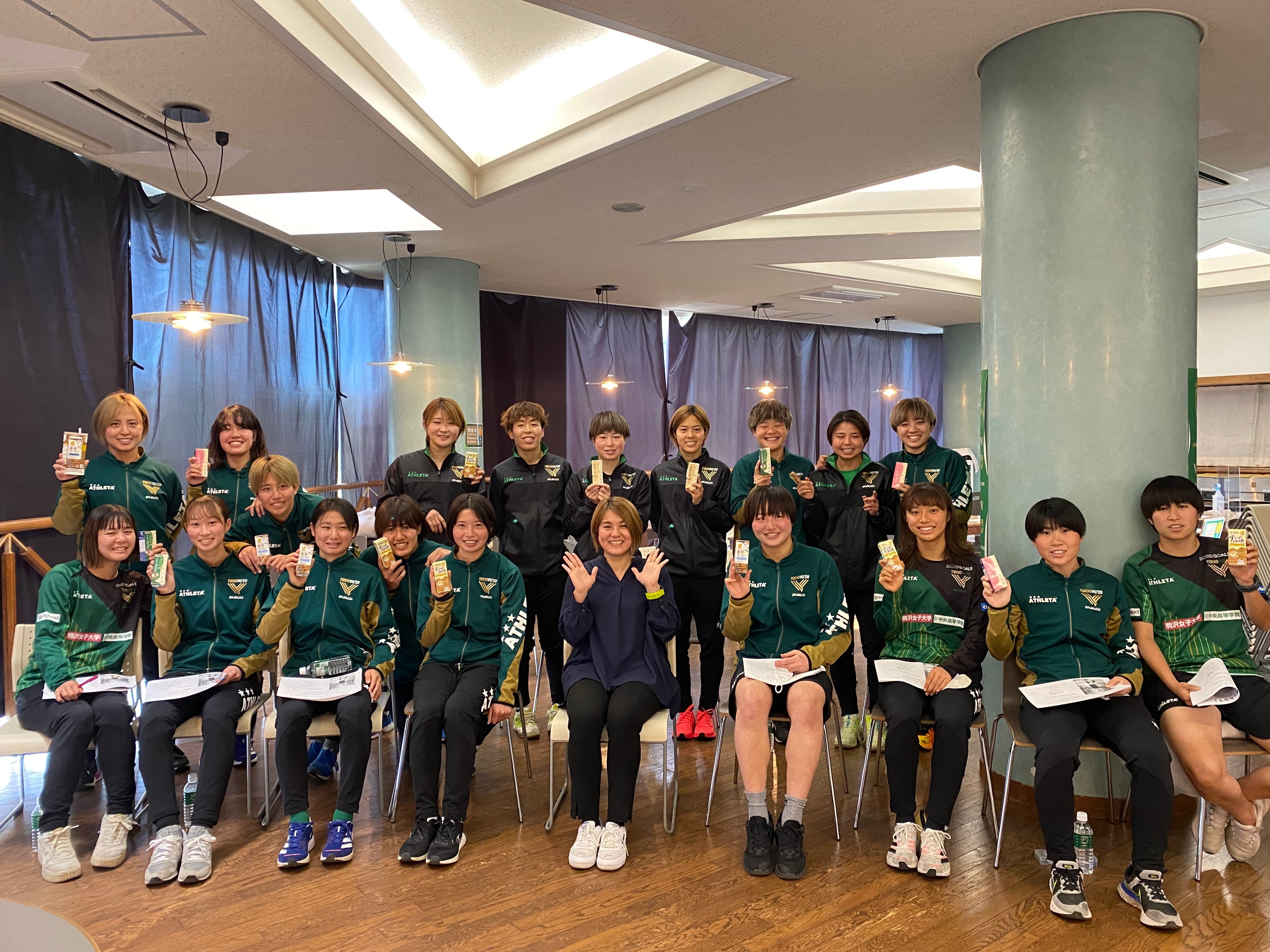 2019年から始まり第4回目となる今回の勉強会は、「パフォーマンス向上のための効果的な補給戦略~エネルギー補給を中心に~」と題し、管理栄養士であり公認スポーツ栄養士の小川静香さんより、女子サッカー選手に焦点を当てた栄養補給法についてお話いただきました。また、その一環として豆乳を植物由来の乳酸菌で発酵させた「豆乳グルト」の試食を実施し、コンディション作りをサポートいたしました。