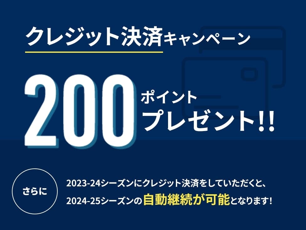 ※2023-24シーズンへの自動継続にご登録いただいた方も、クレジットカード決済でご入会いただければ本キャンペーンの対象となります。