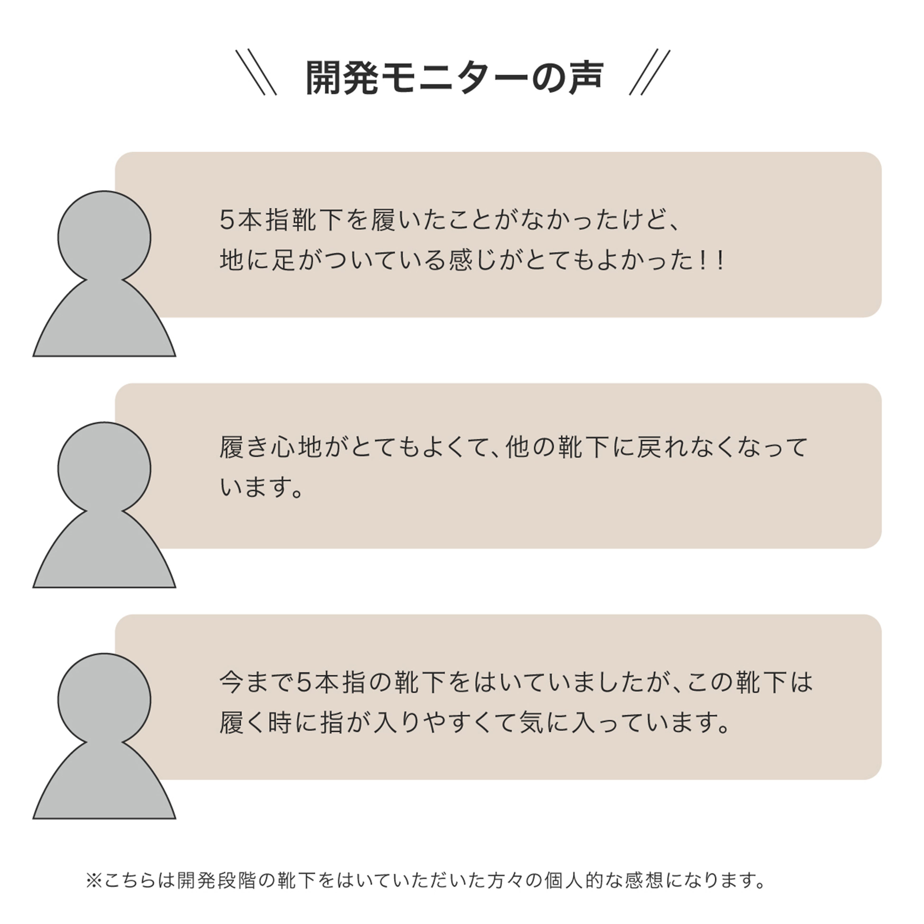 「靴下を通じて様々な足の悩みを解決したい」という想いから、5本指靴下を開発することになりました。