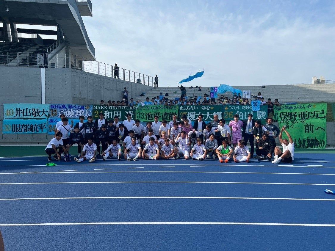 後半58分にアスルクラロ沼津に先制されましたが、75分にレイラック滋賀FCの俣野亜以己が起死回生の同点ゴールで振り出しに戻し、延長戦終了間際のアディショナルタイムに平尾壮が決勝ゴールを奪いました。ホームタウン連携協定を締結した彦根市に滋賀国体に合わせて今年2月に建設された平和堂HATOスタジアム(滋賀県彦根市松原町3028)でのサッカーのこけら落としとなる試合を最高の舞台で勝利。