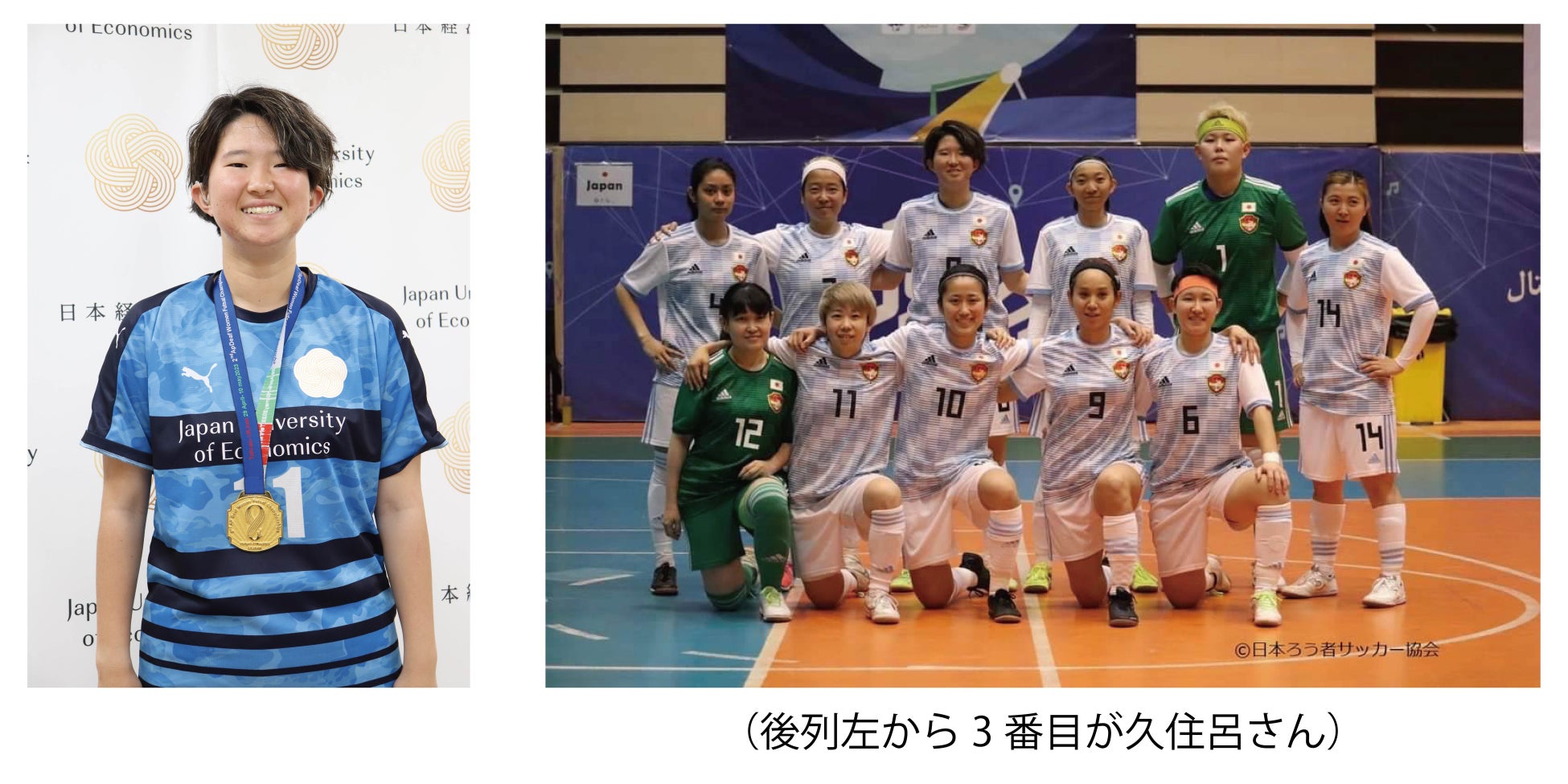 聴覚に障がいがある久住呂さんは、3歳からサッカーを始め、東京の成立学園高校サッカー部に所属し、2022年のデフリンピックではデフサッカー女子日本代表として出場しています。今春本学に入学し、女子サッカー部に入部しました。久住呂さんは、今月イランで行われたアジア太平洋ろう者フットサル選手権大会に日本代表として出場し、チームは4戦全勝で完全優勝。その結果11月にブラジルで行われるデフフットサルワールドカップ2023、来年開催される冬季デフリンピックの出場権を獲得しました。久住呂さん自身も4試合に出場し計5点を決めるなど活躍しました。