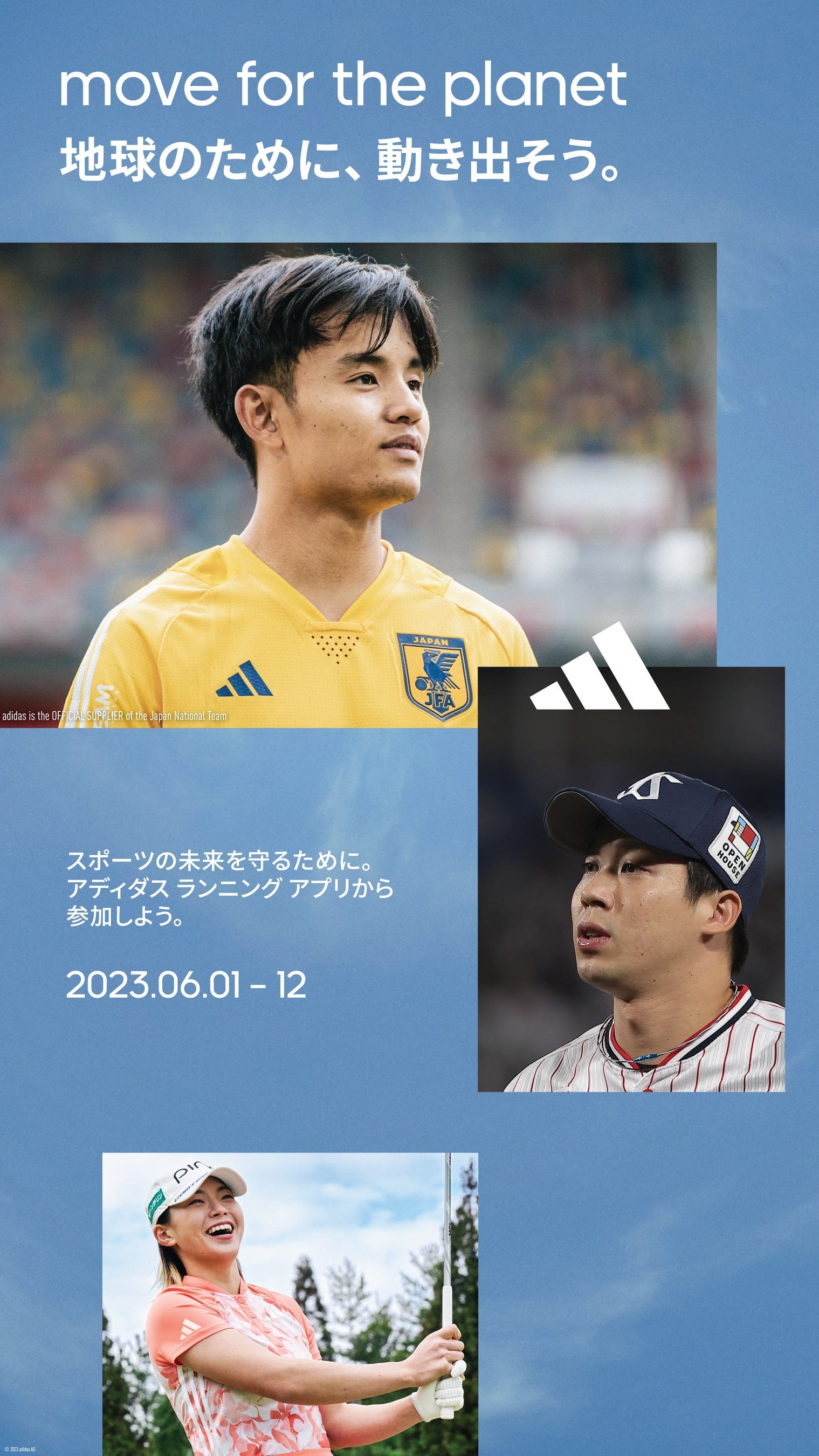 アディダス ジャパン株式会社(本社:東京都港区、代表取締役:ステイン・ヴァンデヴォースト)は、2023年6月1日(木)~12日(月)の期間中、ひとりひとりの運動を、未来のスポーツ環境を守るアクションへと繋げる、新たな世界規模のサステナビリティムーブメント「MOVE FOR THE PLANET(ムーブ・フォー・ザ・プラネット)」 を開催いたします。6月1日(木)の計測開始に先駆け、5月23日(火)より「アディダス ランニングアプリ」での事前登録が可能となり、どなたでもご参加いただけます。