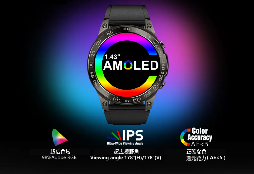 ・鮮明な表示の1.43インチAMOLEDスクリーン