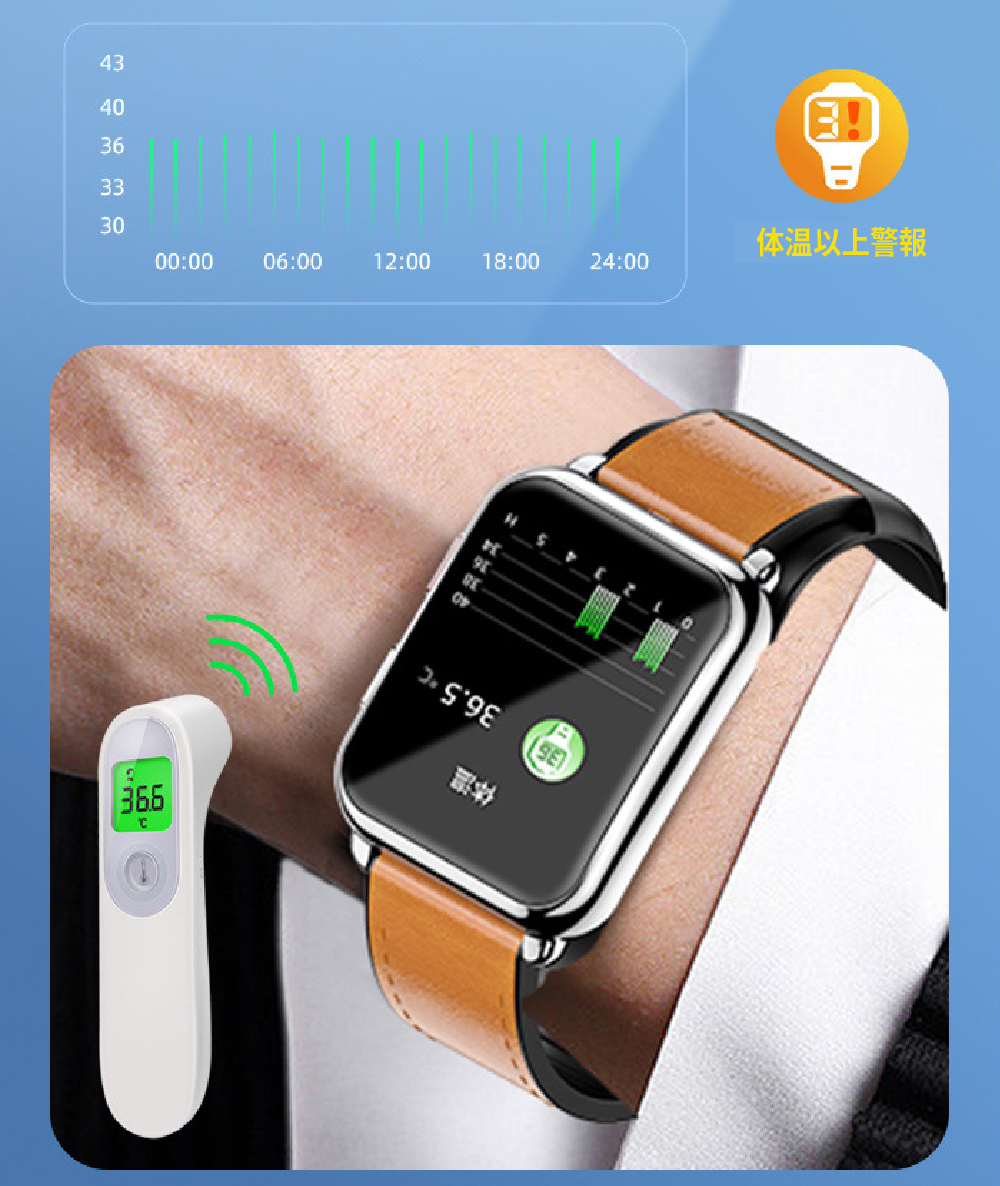 体温を測定し、データ履歴を確認できます。高温になった場合は警告し知らせてくれます。