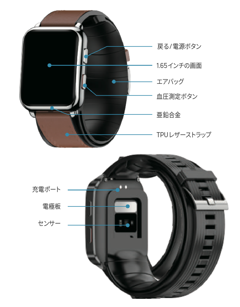 TPUエアバッグがついており、一般的な血圧計と同じ原理で測定してくれます。