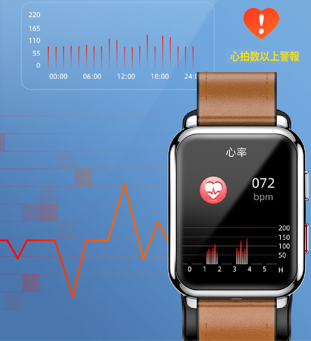 心拍測定センサーを使用し、心拍数、安静時心拍数、運動時心拍数を24時間測定し、記録、分析をして毎日の心拍数に異常がでた場合は警告し知らせてくれます。