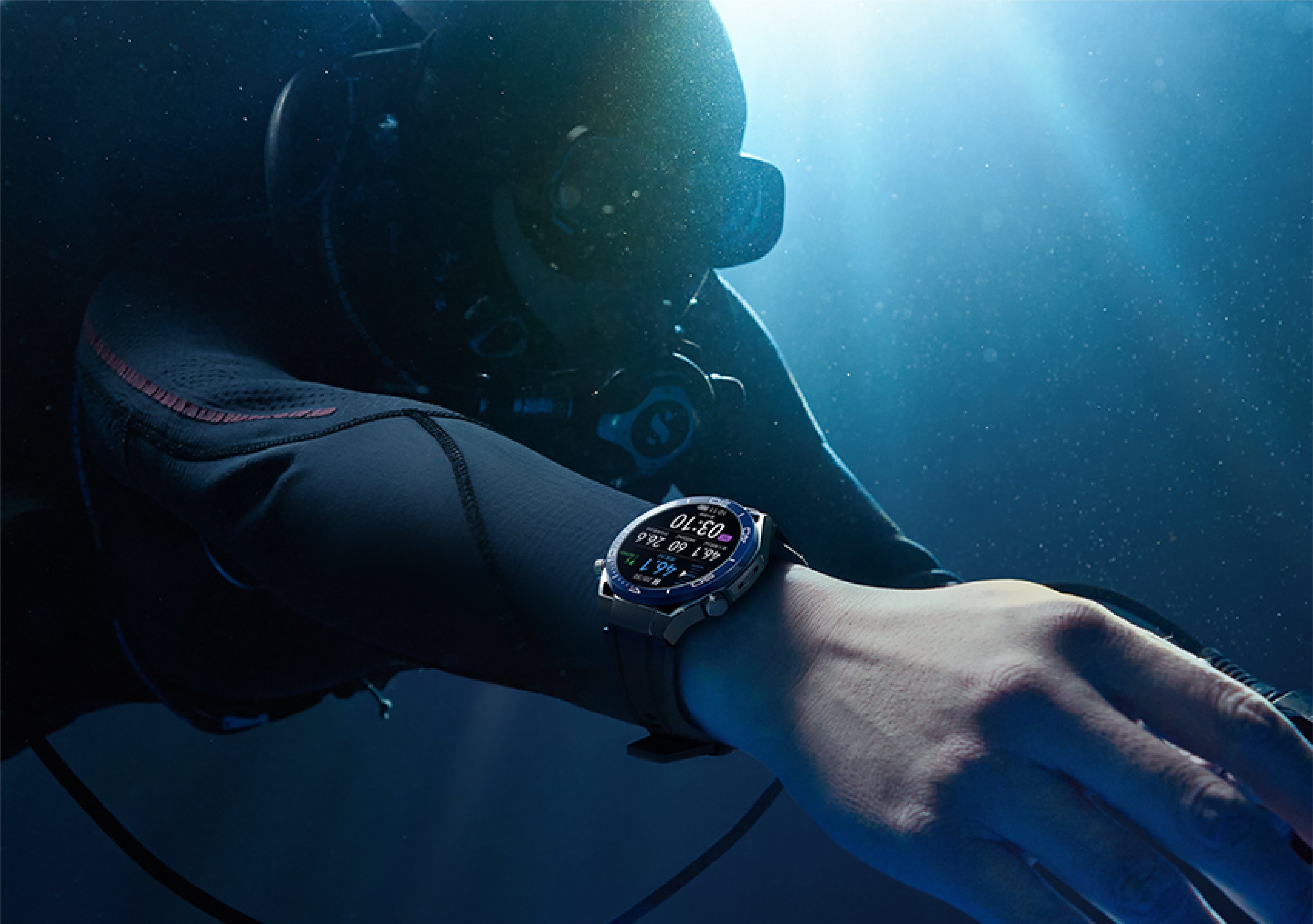 100mのスキューバダイビングモードを提供するスマートウォッチで、プロレベルのさまざまなダイビングアルゴリズムとダイビングガイドを備えています。Bühlmannによる減圧アルゴリズムを用いて、ダイビングデータを継続的にモニタリングし、リアルタイムの環境に応じた提案を行うため、集中力を切らさずに深い青の世界に没入することができます。