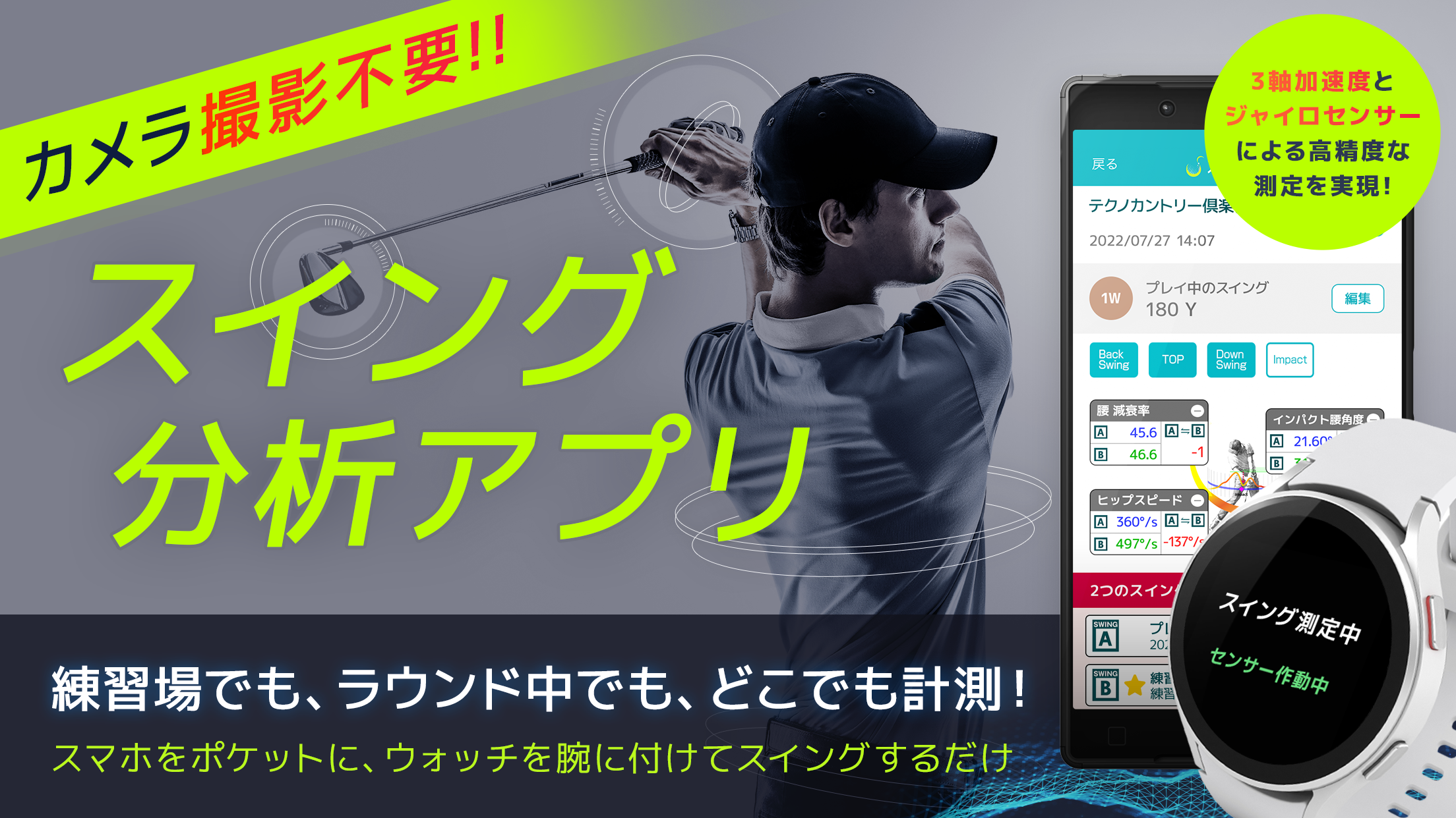 ■テクノクラフトが提供するアプリ「スイング分析」と連携して、高精度なゴルフトレーニングを