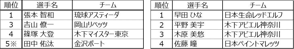 ※男子選考ポイント2位の戸上隼輔選手は、Tリーグ登録選手でない為、5位の田中佑汰選手を選出