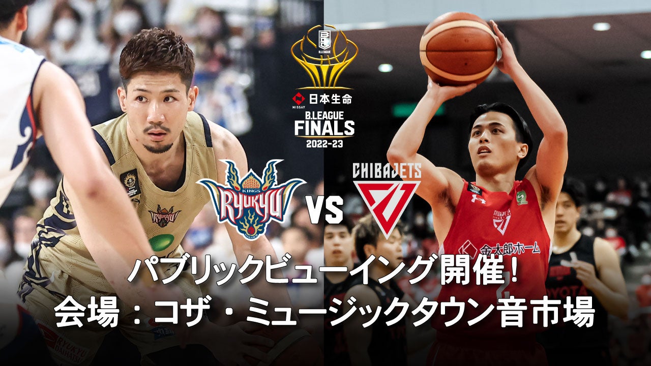 この度、一般社団法人沖縄市観光物産振興協会(沖縄市スポーツコンベンション推進協議会)主催のもと、コザ・ミュージックタウン音市場にて「日本生命 B.LEAGUE FINALS 2022-23」琉球ゴールデンキングスvs千葉ジェッツのパブリックビューイングが開催されます。初のB.LEAGUE制覇に向けて、沖縄からキングスへの応援をお願いします。