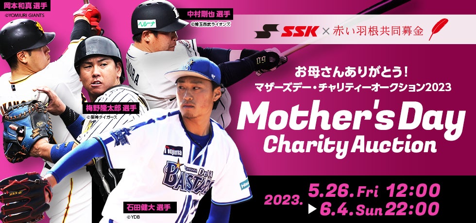 SSKアドバイザー契約選手が5月14日(日)の「NPBマザーズデー2023」の試合や練習などで着用した、母の日仕様のピンク色の野球用具に、直筆サインを施し、株式会社モバオクのチャリティーオークション特設サイトにて出品します。