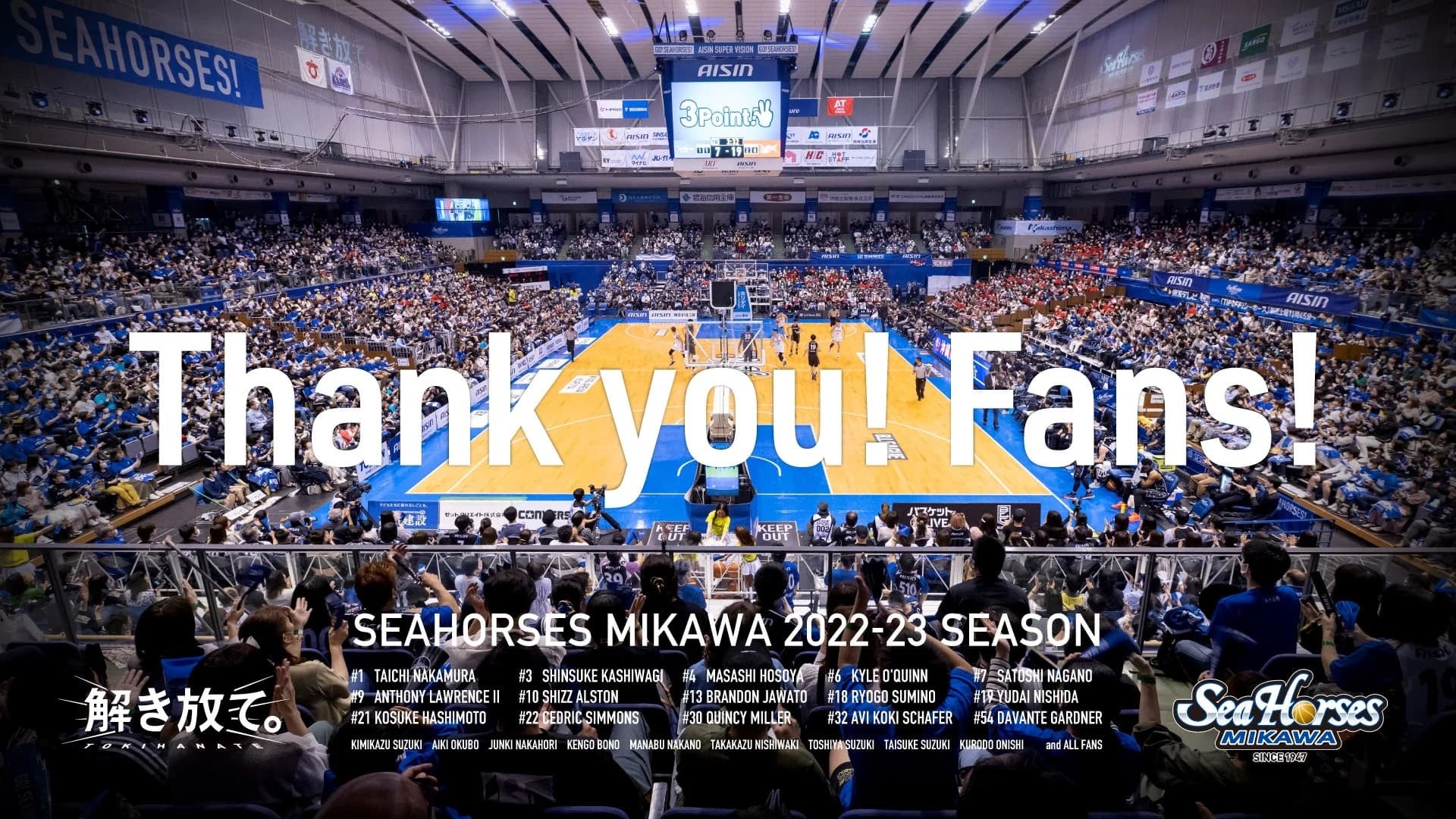 シーホース三河は2023-24シーズン一つの節目を迎えますが、我々の目指す姿が変わることはありません。シーホース三河は、これからもファン、ブースターおよび地域の方々、そして全ての関係者の皆さまに愛されるクラブになるべく活動して参ります。今後とも変わらぬご支援を賜りますようお願い申し上げます。