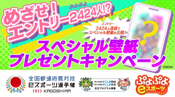 本キャンペーンでは、「都道府県代表決定戦」と「都道府県代表決定戦プレイオフ」へのエントリー数が「ぷよぷよ」にちなんだ2,424人到達で「全国都道府県対抗eスポーツ選手権2023 KAGOSHIMA ぷよぷよ部門」のスペシャル壁紙を公開いたします。