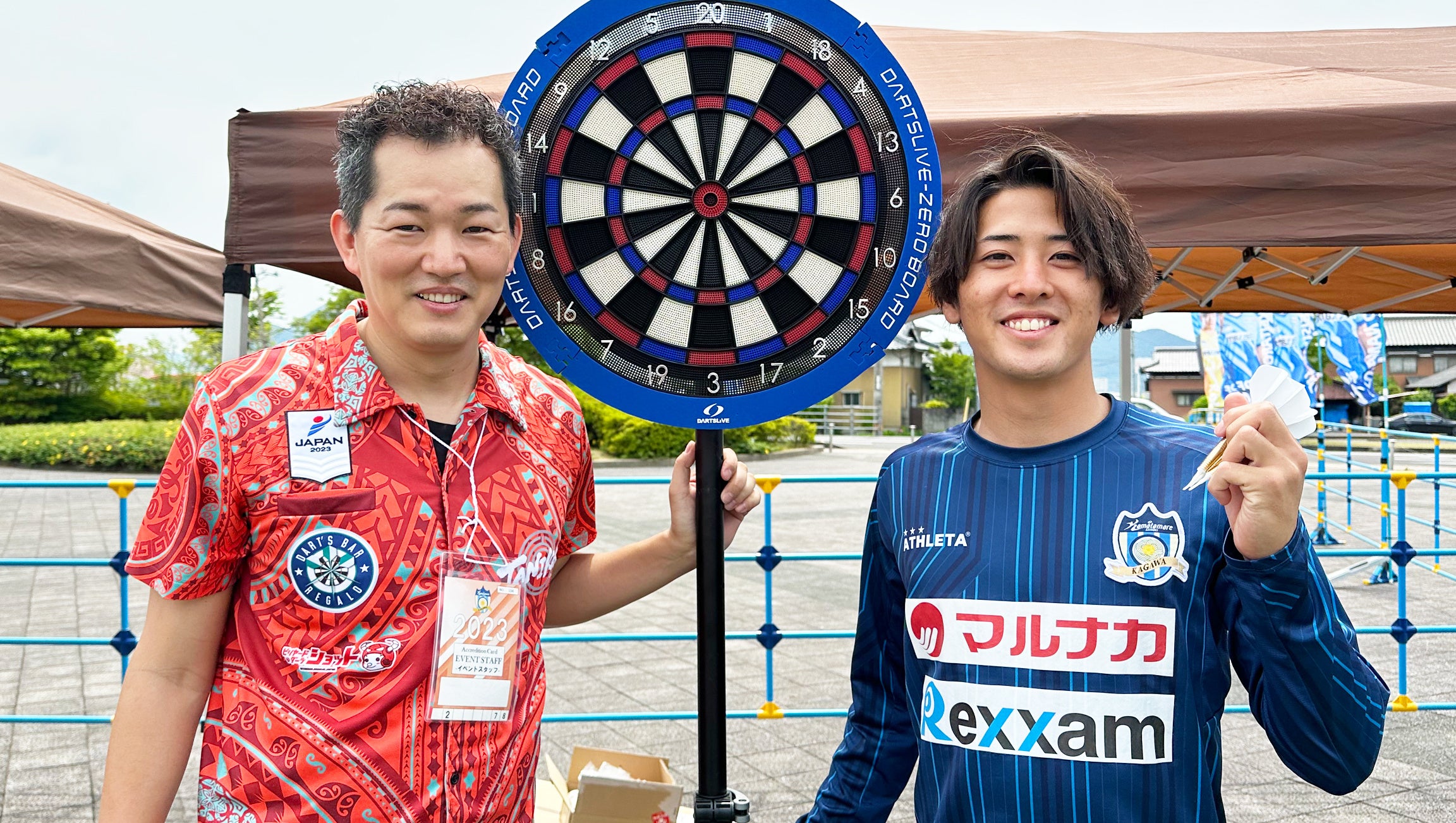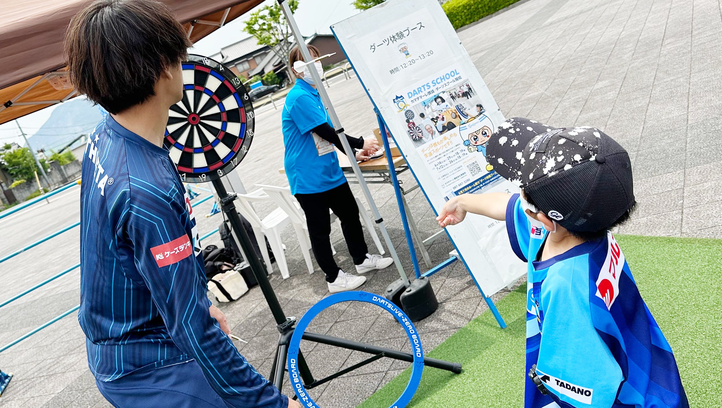 5月27日(土)のホーム戦でもダーツ体験会を開催。本スクールで講師を務める鈴木選手とカマタマーレ讃岐の竹村俊二選手がブースに立ち、お子様からシニアまで多くの方がダーツを楽しみました。