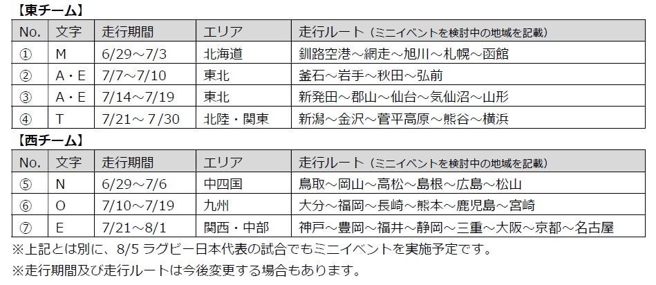 また、7~8月開催のラグビー日本代表戦5会場(7/8東京、7/15熊本、7/22北海道、7/29大阪、8/5東京)や三菱地所グループが運営する全国の商業施設等でも実施予定です。