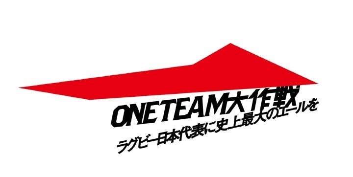 「ONE TEAM大作戦」の文字も右上がりに、スクラムをくむようにそれぞれの文字がふれあったり組み合うようにデザインしました。