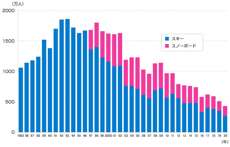 しかし、右のグラフの通り、競技人口は1990年代をピークに減少を続けており、用品の販売不振からプロ選手へのスポンサー費も減少していると言われます。