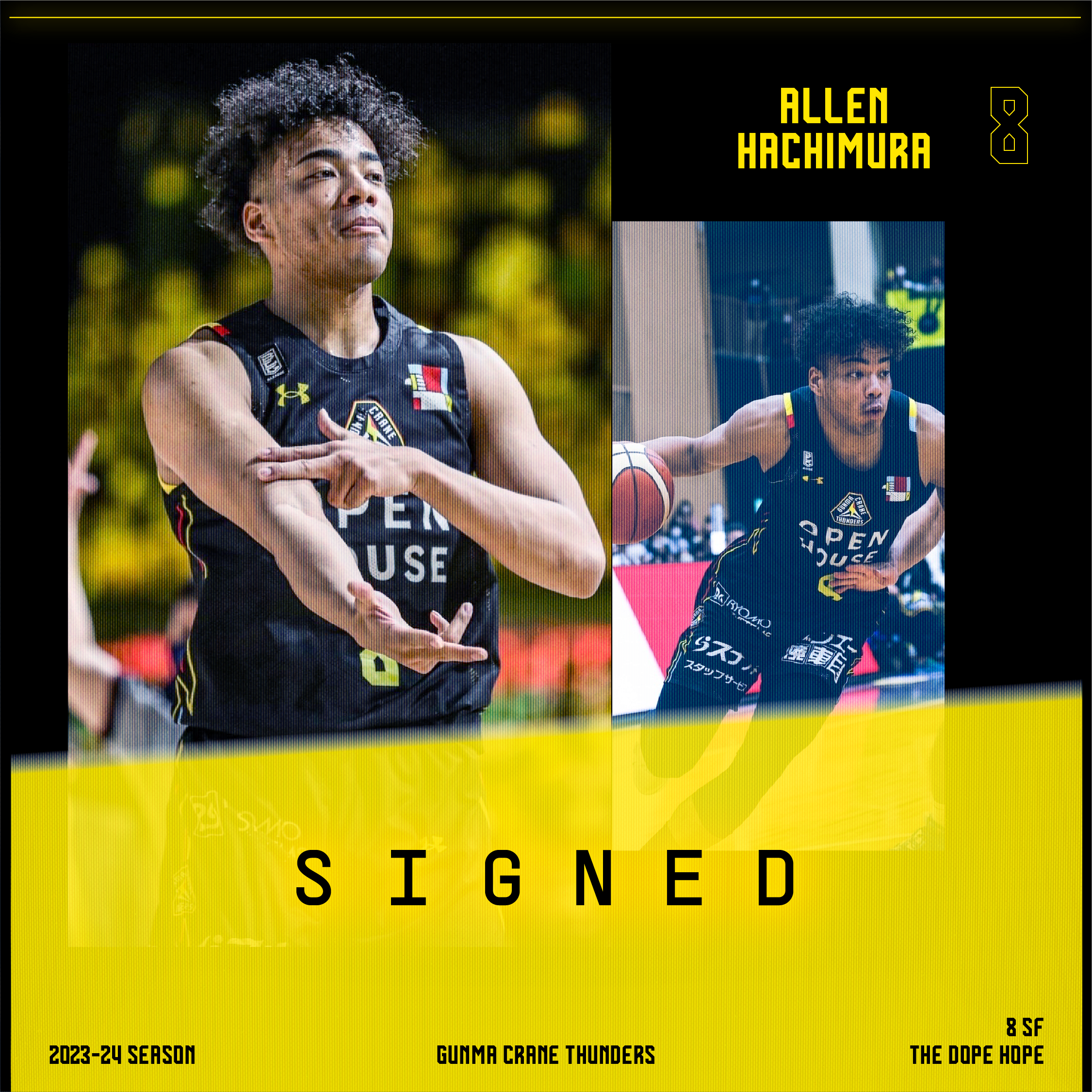 この度、群馬クレインサンダーズでは、#8 八村阿蓮 選手とのBリーグ2023-24シーズンの選手契約(継続)が基本合意に達しましたのでお知らせいたします。