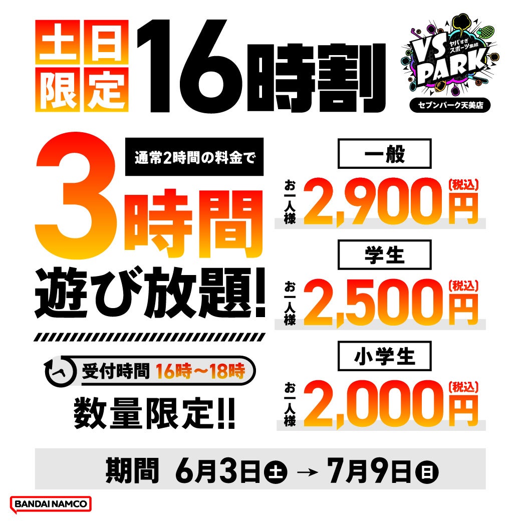 【内容】期間中の土日限定で、16時以降120分料金で180分間遊べます。