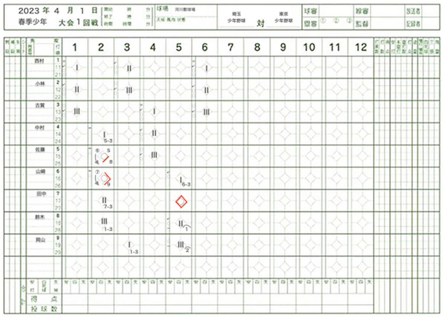 ・過去の試合のスコアブック