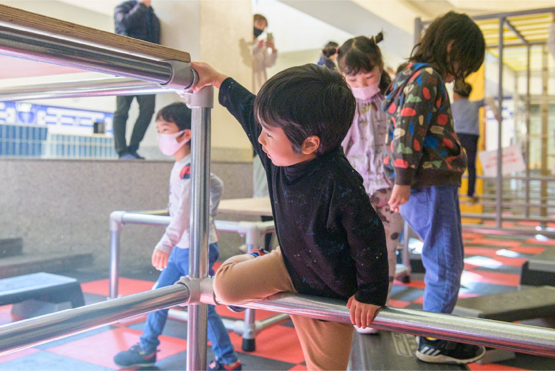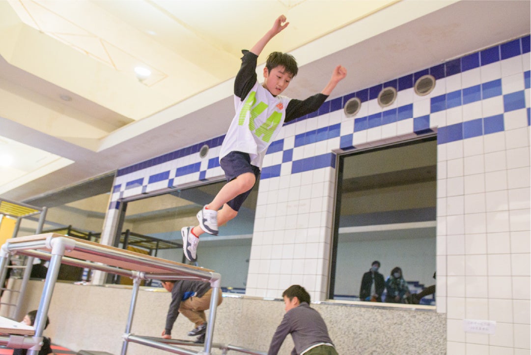 パルクールは、走る・跳ぶ・登るなどさまざま動きを環境に応じて自分で考え、組み合わせて心身を鍛えるフランス生まれの新しいスポーツです。他者との競争ではなく、自分自身の能力を見極めて挑戦していくスポーツなので、多様性と創造性を遊びの中で育てることができます。