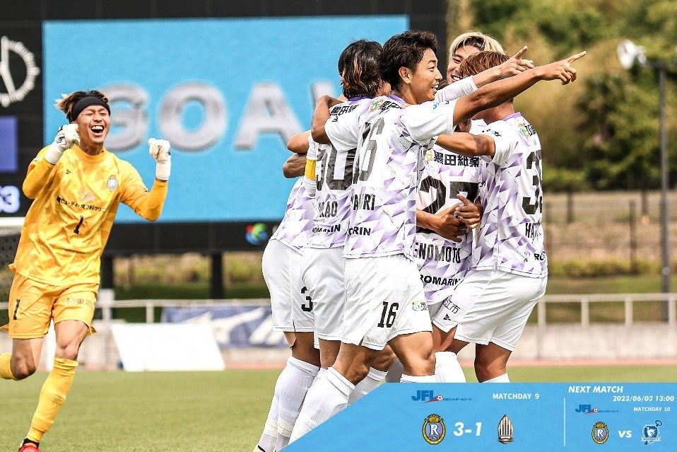 前半は浦安が序盤から積極的に仕掛けて7本のシュートを放ちますがレイラックの守備陣の体を張った守りで得点を許さず。レイラックも得意のセットプレー等からチャンスを作るがゴールなくスコアレスで折り返しました。後半55分にレイラックの服部航平が右足でボレーシュートを決めて先制。72分には嘉茂良悟がクロスを入れると榎本大輝が相手を交わしながら2点目を決めました。85分には直接FKからのボールに右サイドで繋いだボールをゴール前に飛び込んだ宮城雅史が右足で決め今シーズンチーム最多得点タイとなる3点目を奪いました。浦安はアディショナルタイムに1得点を返すもそのまま試合終了。レイラックは第6節以来となる首位に再浮上しました。次節は6月3日(土)13時からミネベアミツミFCとアウェーの宮崎市内で対戦。連勝してシーズン前半節目となる第10節の首位通過を目指します。