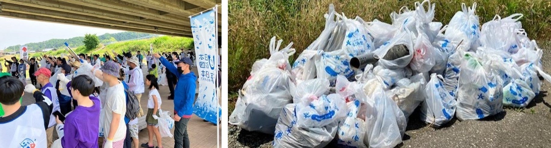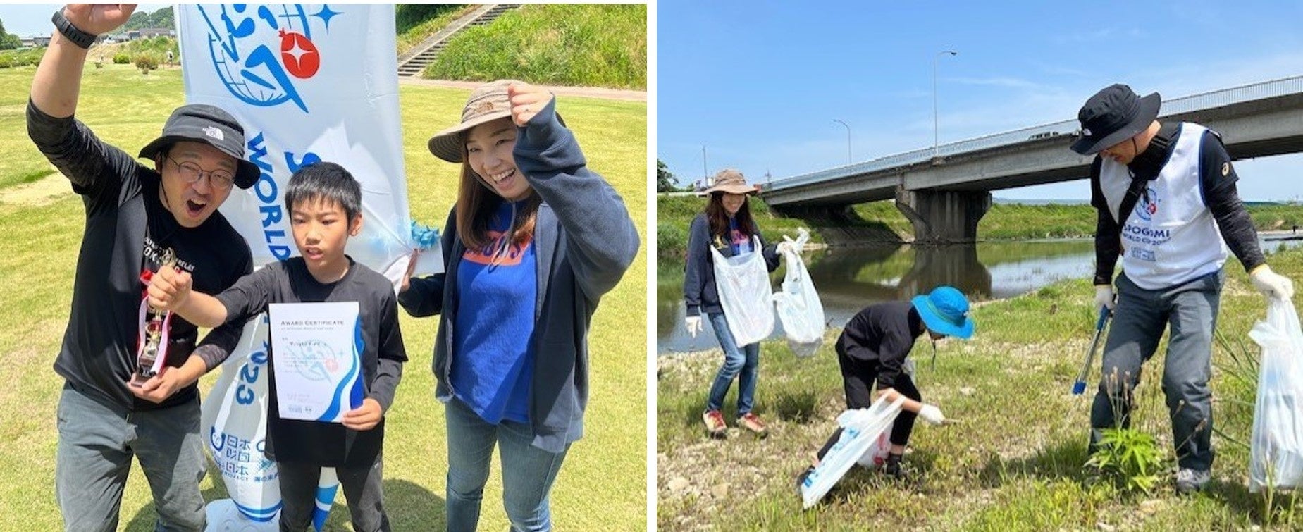 福井県には、海につながる大きな川が多くあります。今回、河川敷でスポGOMIワールドカップを開催し、参加者の皆様と海洋ごみ削減の想いを共有することができました。鯖江市に協力を得て、家庭用ごみを減らす取り組みを学ぶ環境ブースも設置しました。競技中は、様々な世代の方がそれぞれのペースでスポGOMIを楽しんでいたのが印象的でした。綺麗に見えている日野川河川公園も、見えないところにたくさんのごみが隠れていることに気付いた皆さん。熱心にごみ拾いに取り組み、最終的にごみの総量は、101.9kgになりました。