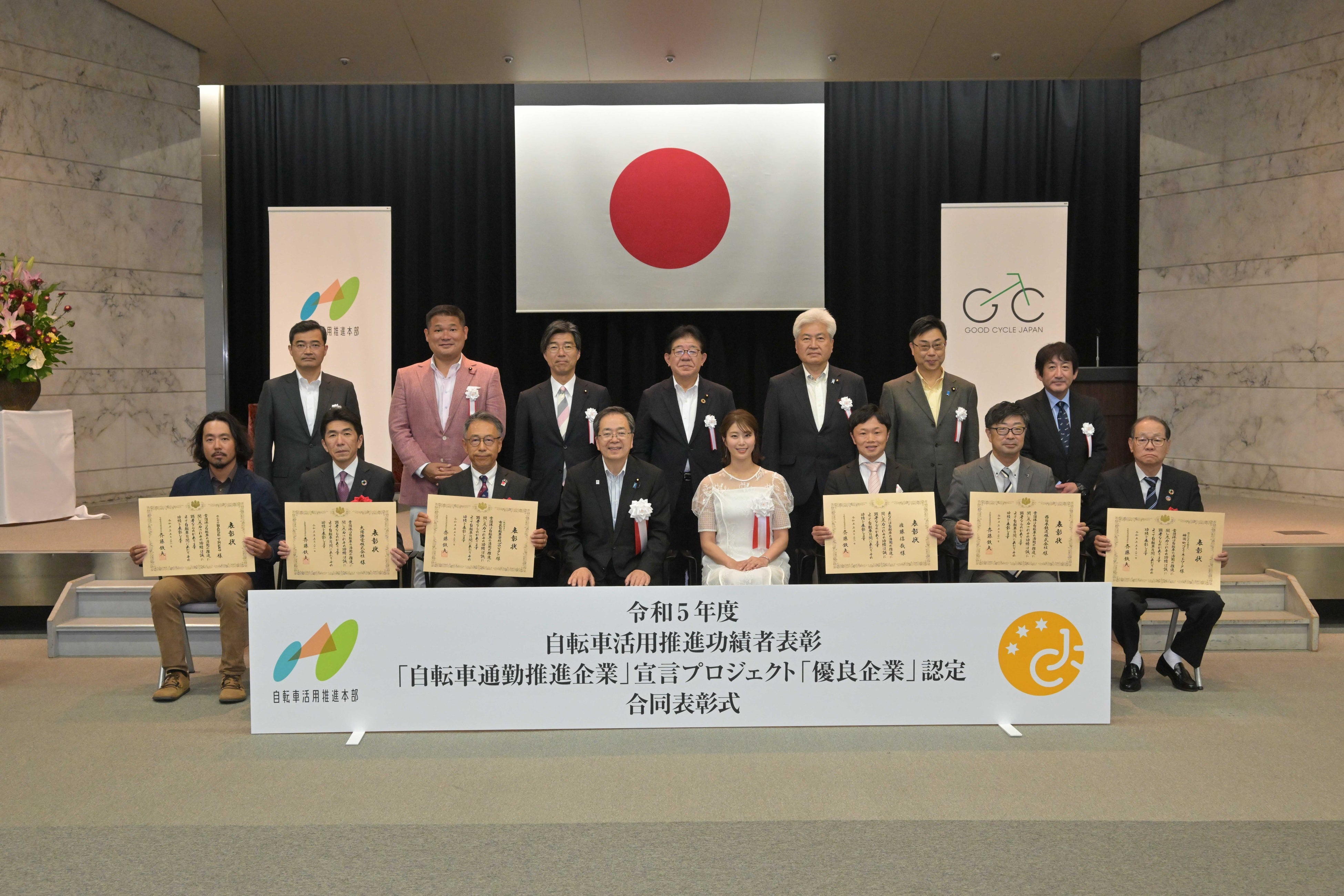 自転車活用推進法に基づき、自転車の活用推進に関し、特に顕著な功績があると認められる個人・団体を表彰に送られる令和5年度 自転車活用推進功績者表彰『自転車通勤推進企業』宣言プロジェクト『優良企業』認定 合同表彰式に VC FUKUOKA代表 佐藤信哉 が出席・受賞した。