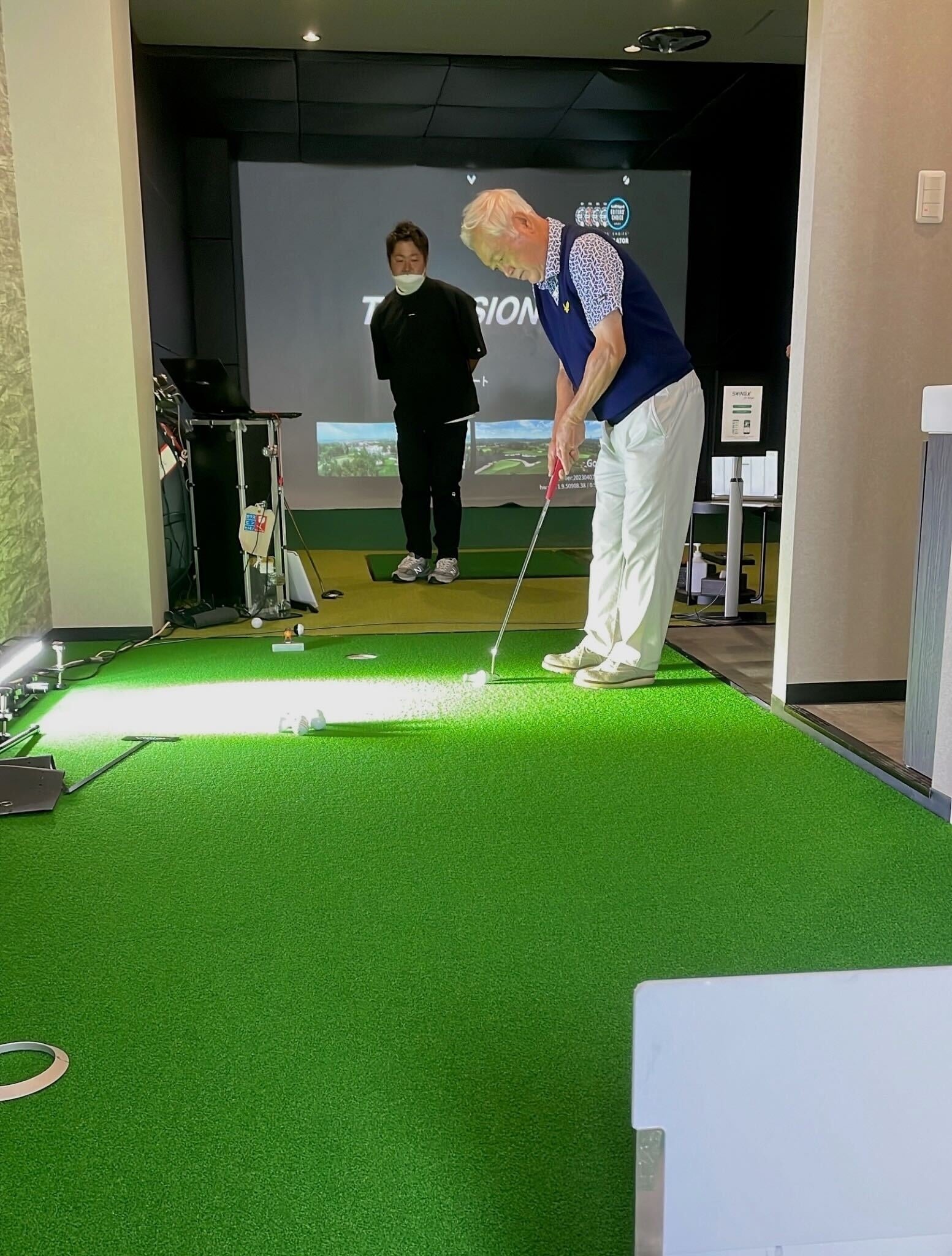 レッスン内容は最高260fpsで撮影可能なハイスピードカメラを使ったパッティング用弾道解析システム『Quintic Ball Roll』や、ストロークのテンポと振り幅を整えるテンポスティック、さらにはパターマットやレーザーを用いながらのマンツーマンレッスン。