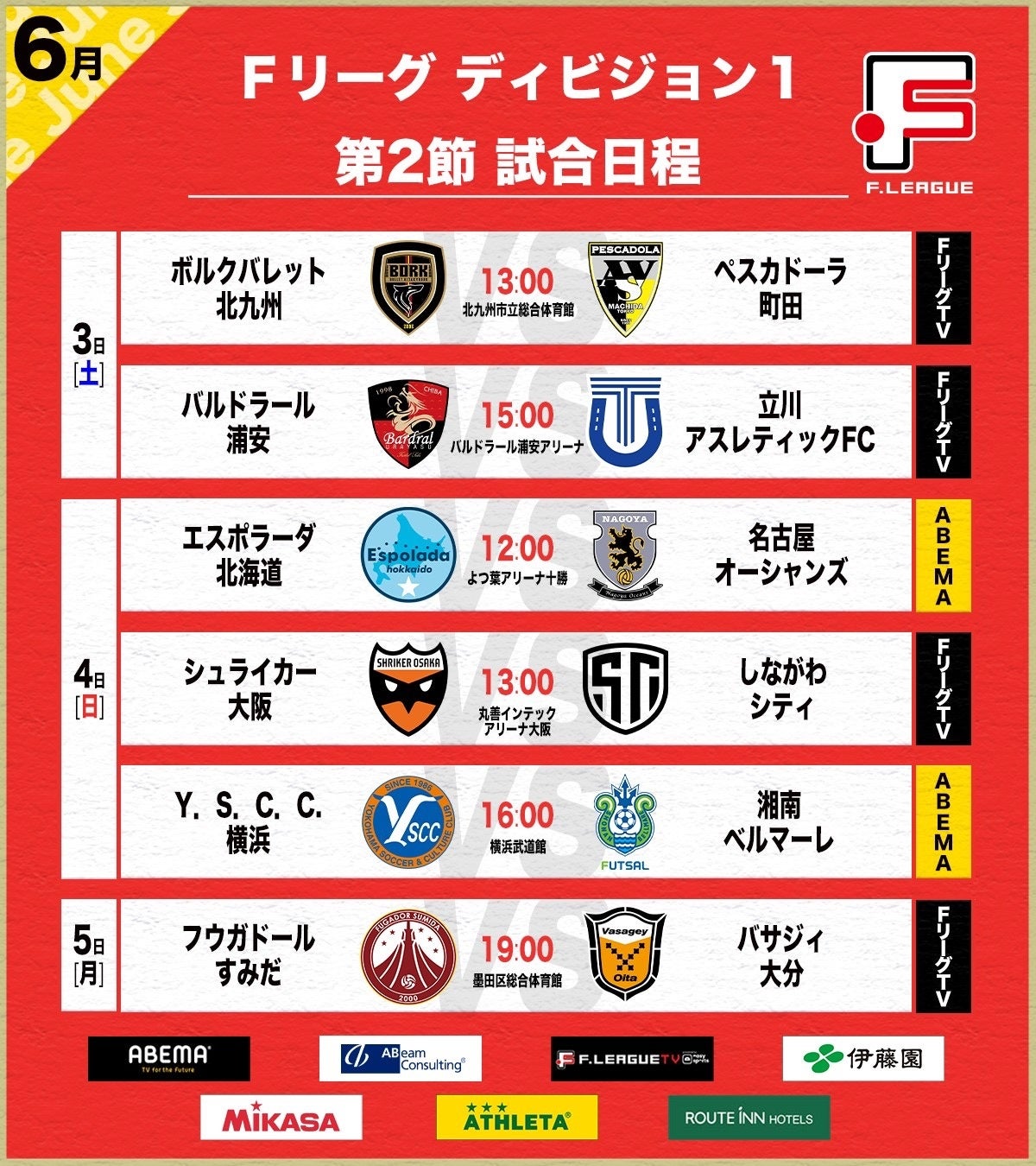今シーズンのFリーグディビジョン1は、インターネットテレビ局「ABEMA」で毎節1-2試合、「FリーグTV powered by easysports」で毎節4-5試合を生中継いたしますので、ぜひご視聴ください!