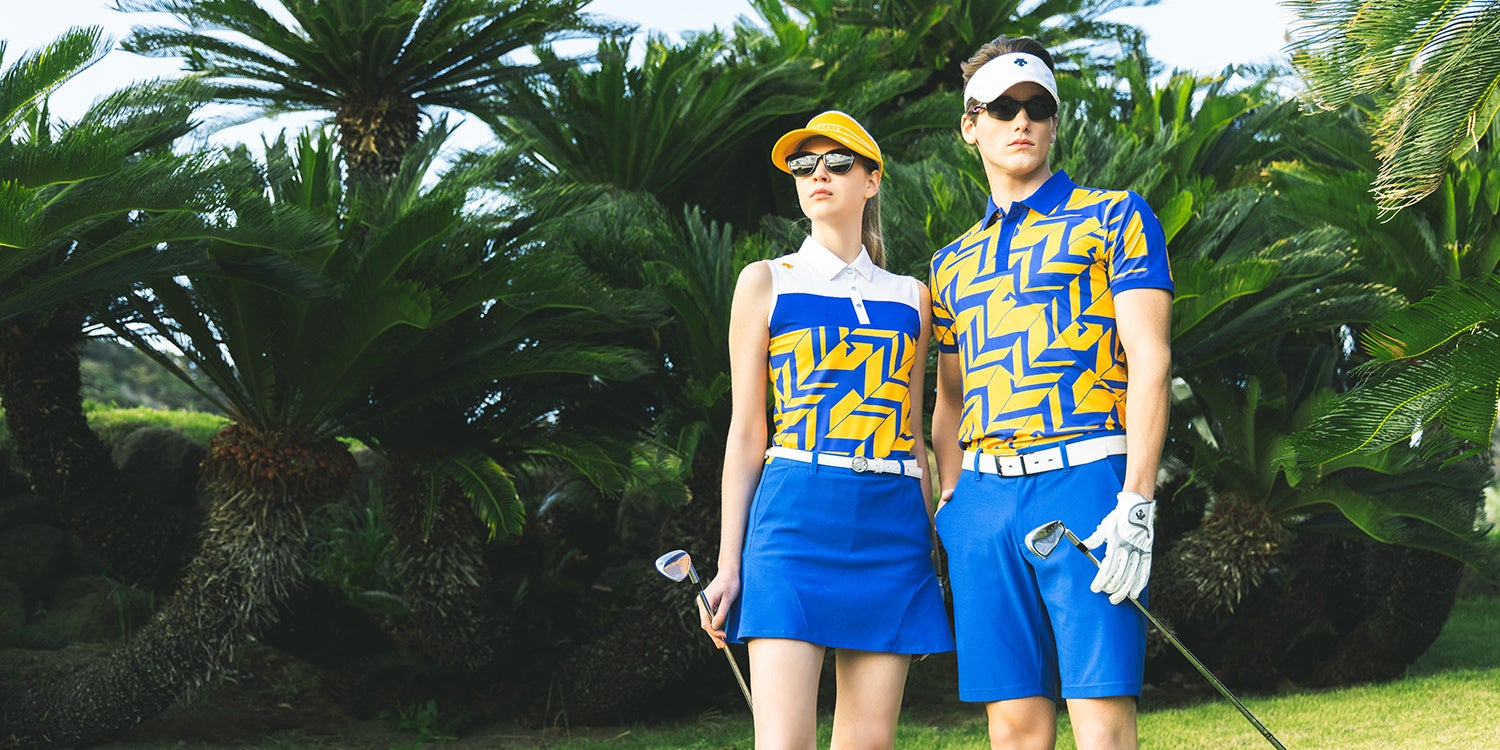 サーフィンのメッカ、アメリカ西海岸サンタモニカのイメージから、サーフウェアのようなゴルフスタイルを提案。ネイティブ・アメリカンの伝統的なオルテガ柄をヒントに、『デサント』のロゴ“スピリットマーク”をグラフィック化した総柄生地をトップスに使用。夏でも涼しく着られる『デサント』開発「CoolistD-Tec(クーリストディーテック)」機能を備え、サラッとした風合いが特徴のリサイクル素材を使用しています。