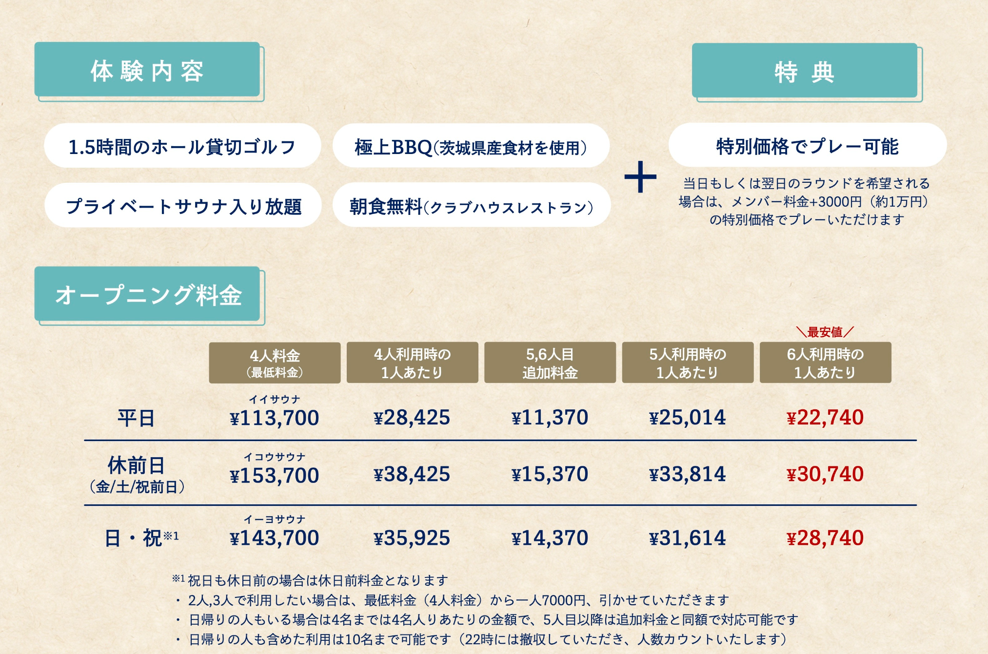 HOLE37の宿泊者は約1時間半〜2時間の間、無料の貸切ゴルフ体験が可能です。