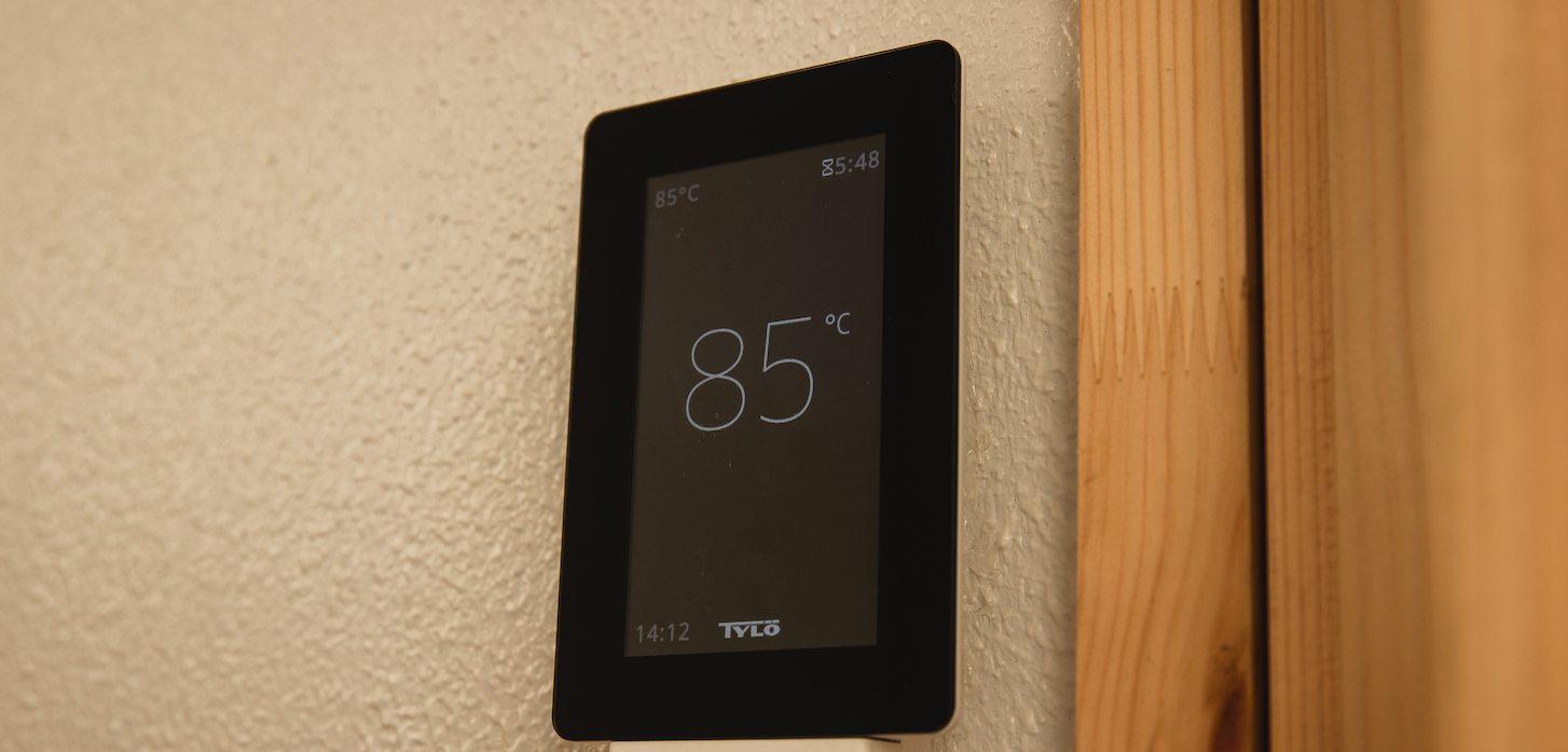サウナストーブは最新のTyroを採用。ストーブの火力はもちろん、操作はタッチパネル式のモニタで誰でも簡単に操作でき、いつでも好きな温度に調節できます。