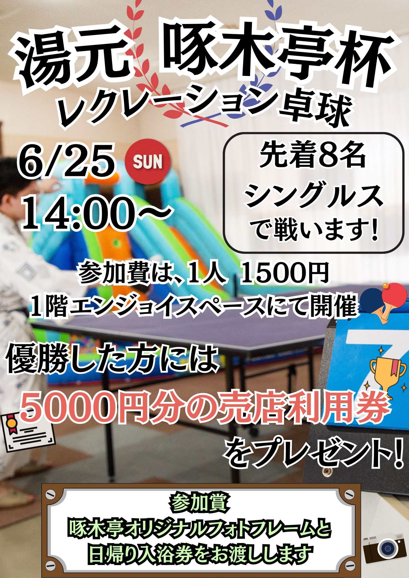 無いのではないでしょうか?ということで、当館「湯元啄木亭」で初の誰でも参加できる「レクレーション卓球大会」を開催して、