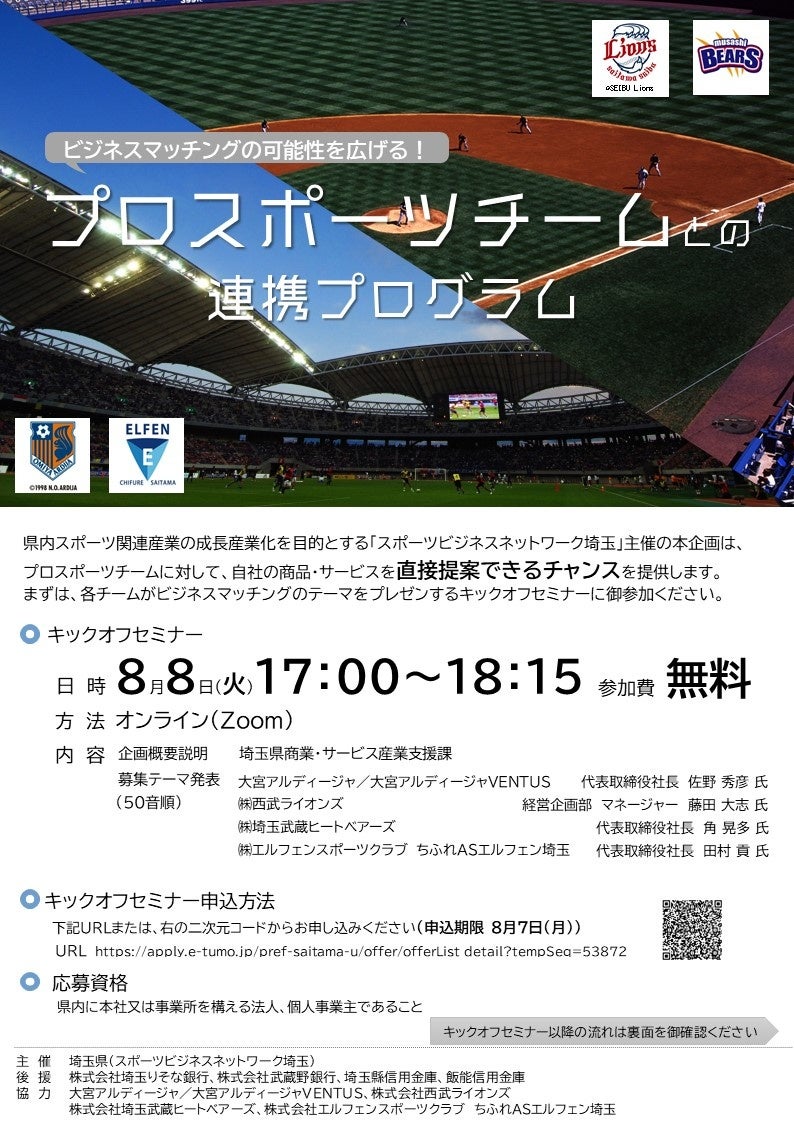 県内に拠点を構えるプロスポーツチームに対し自社の商品・サービスを直接提案できるチャンスです!ぜひ御参加ください。