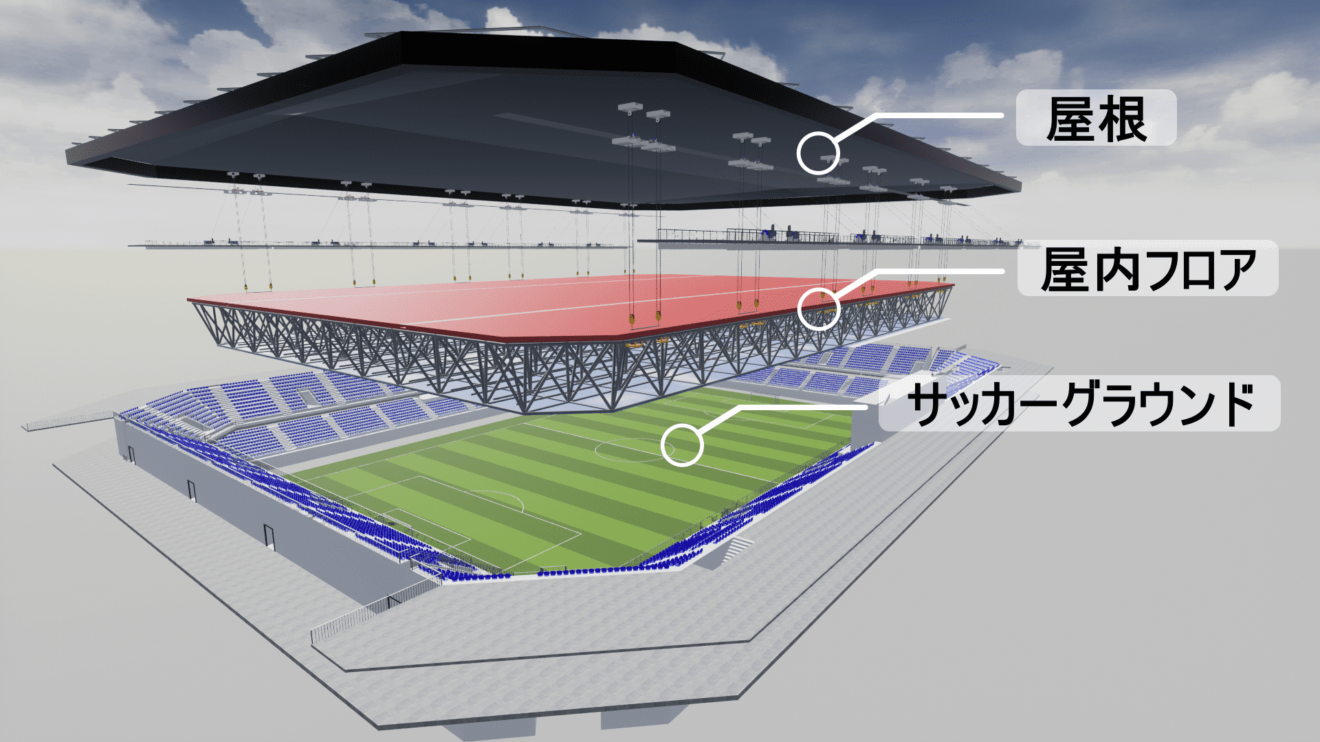 これによりサッカー以外にも、バスケットボールやバレーボールなどのプロスポーツ、テニスやアイススケート、コンサート各種イベントなどに幅広く使え、収益につながる稼働率を高めることで、より持続可能なスタジアム・アリーナを実現することができる。