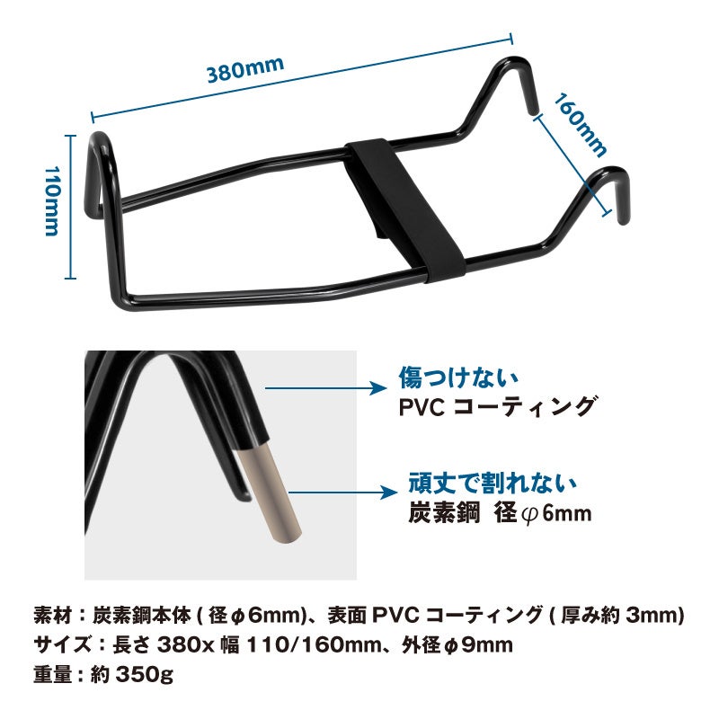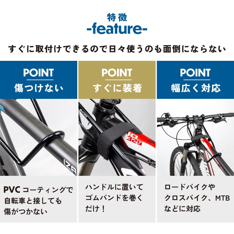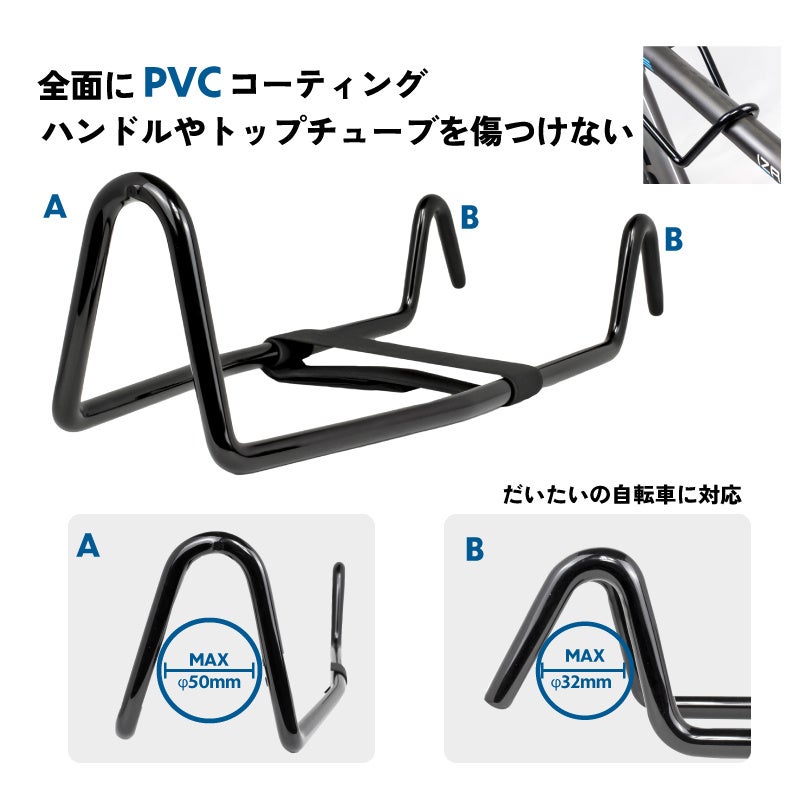 自転車と接する外側はPVCコーティングでハンドルやトップチューブを傷つけません。