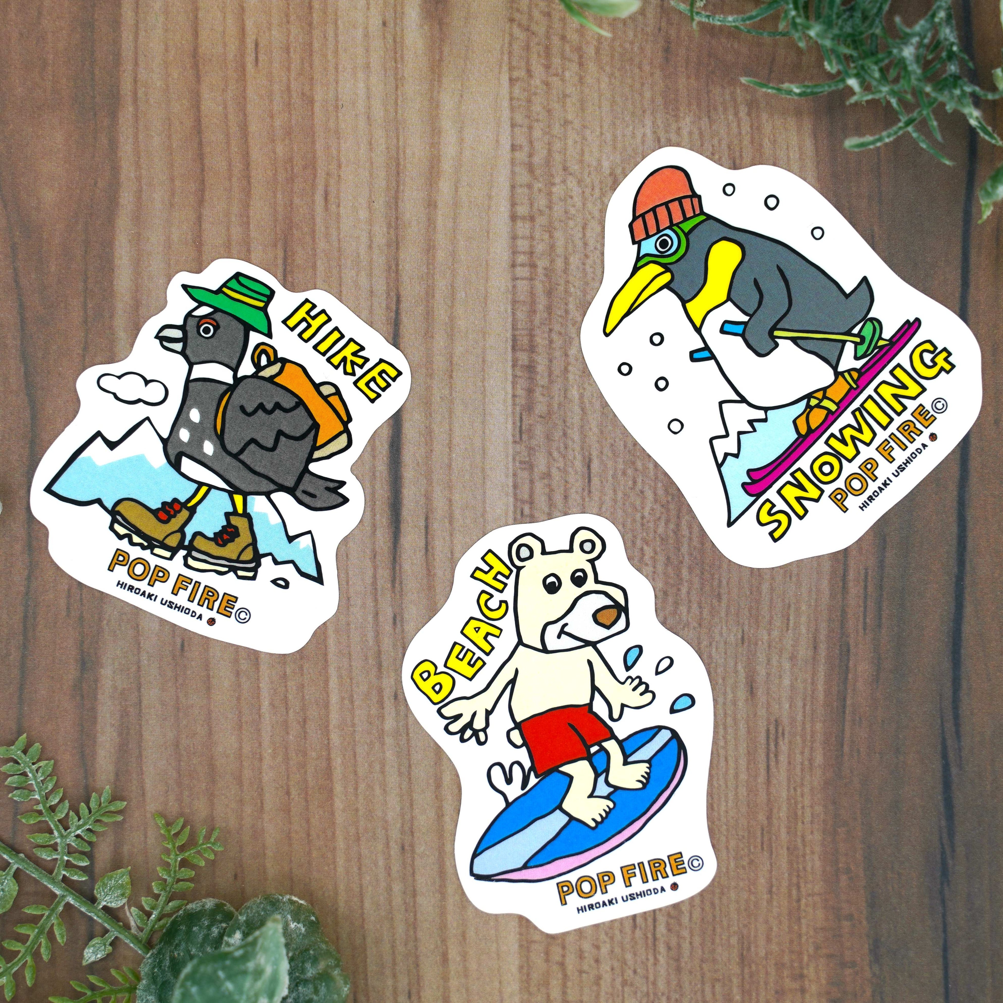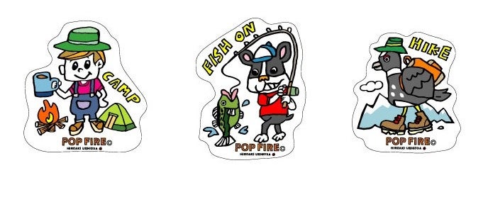 「POP FIRE」はアウトドアイラストレーター「ウシオダヒロアキ」が立ち上げたアウトドアグッズブランド。2020年に感染症の拡大で環境が大きく変化する中、彼自身が書き下ろしたPOPなイラスト使い、ステッカーやキーホルダーなど、身近なアウトドアグッズの提供を通して「アウトドアライフ」を楽しく演出したい、という思いからスタート。デビュー以来、アウトドア専門店をはじめ、スポーツライフスタイルストアや、セレクトショップなどで販売をしています。