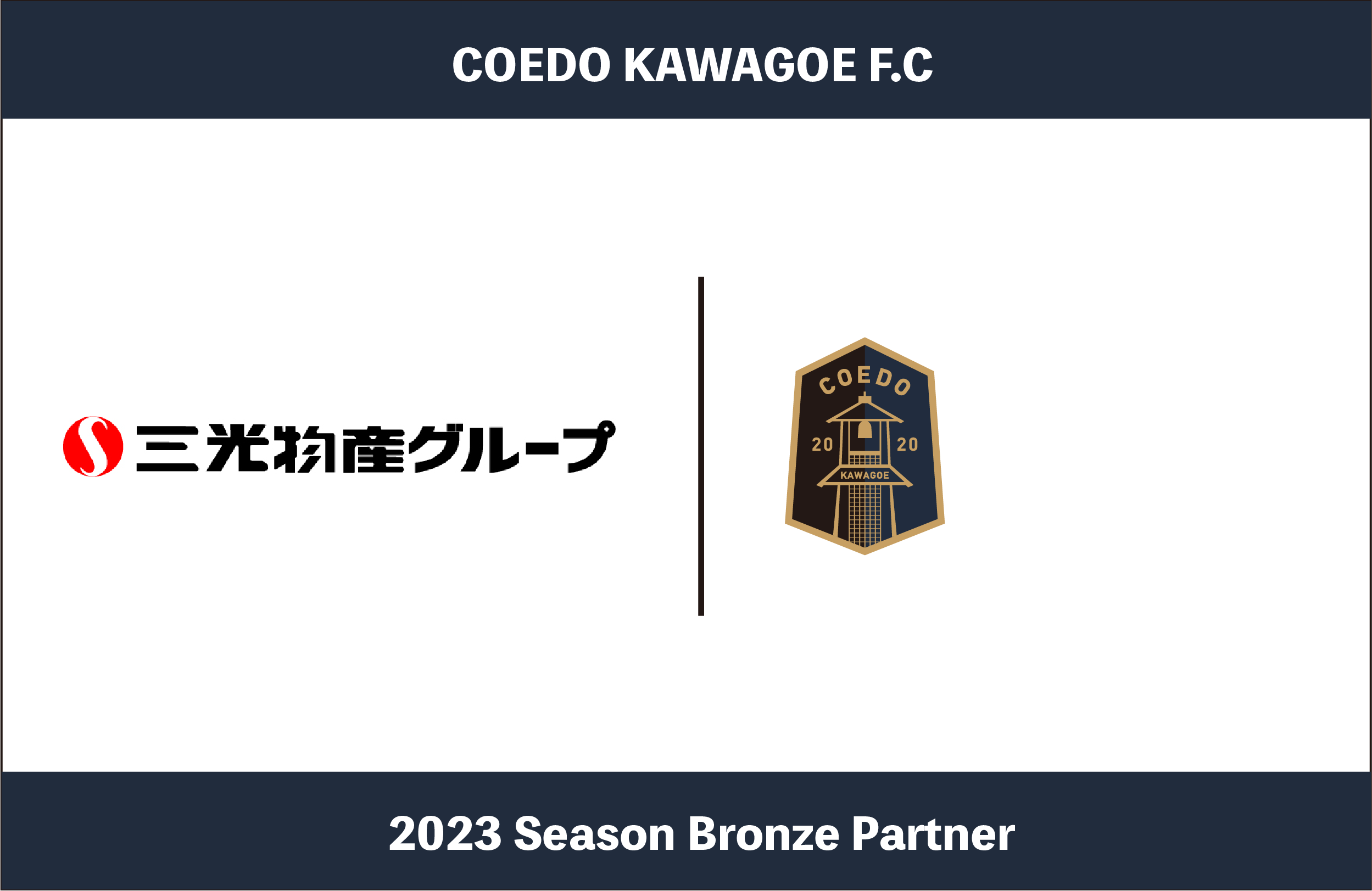 COEDO KAWAGOE F.Cを運営するCOEDO KAWAGOE F.C株式会社(埼玉県川越市、代表取締役 有田和生)は、創業50年以上の信頼と実績で、川越温泉湯遊ランド・ホテル三光等、多様な事業を展開する三光物産グループ(埼玉県川越市、代表取締役社長 木所裕幸)と2023シーズンのブロンズパートナー契約を締結したことを発表いたします。