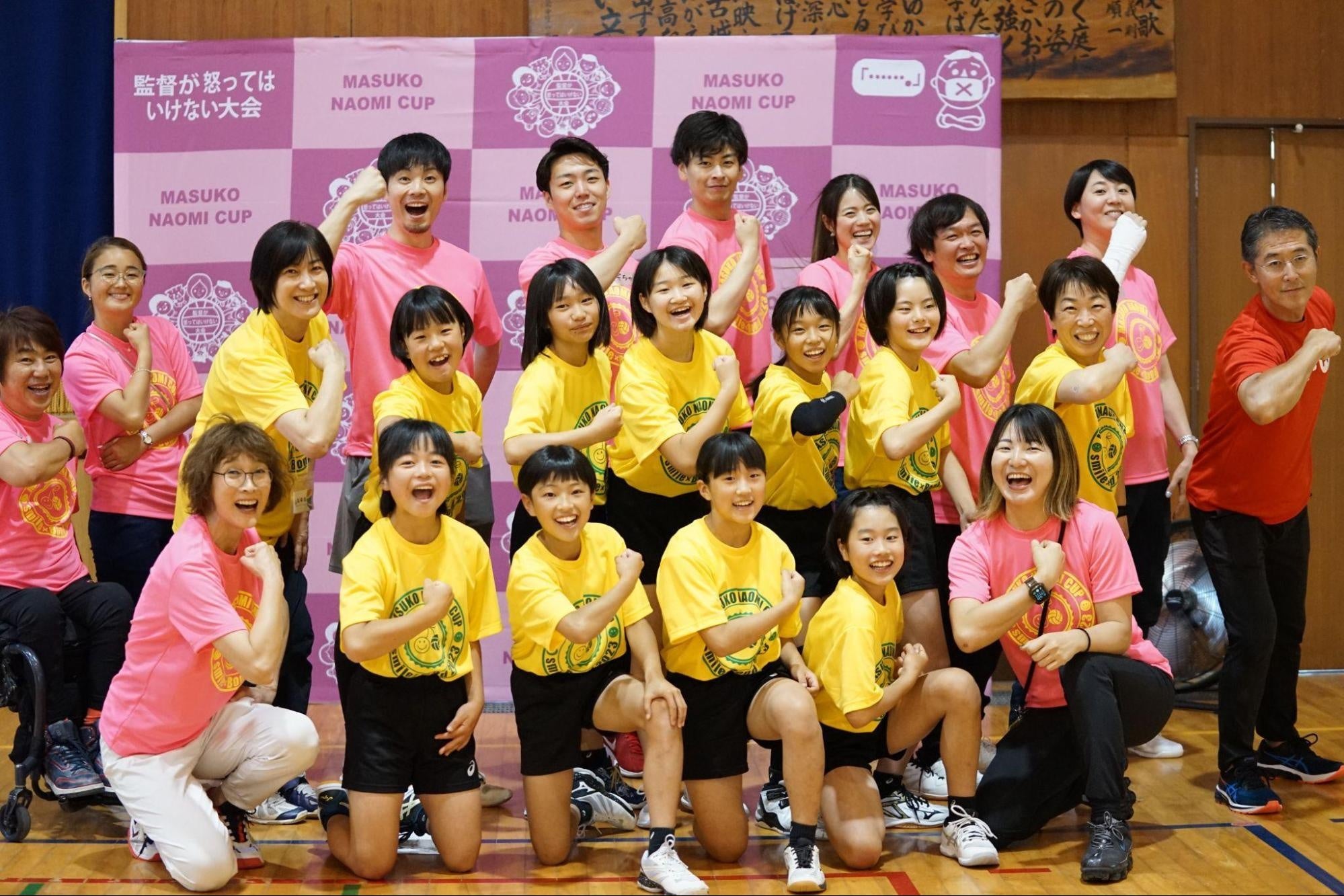 写真は優勝した昭和南バレーボールクラブとHEROsアスリート、益子直美さんら