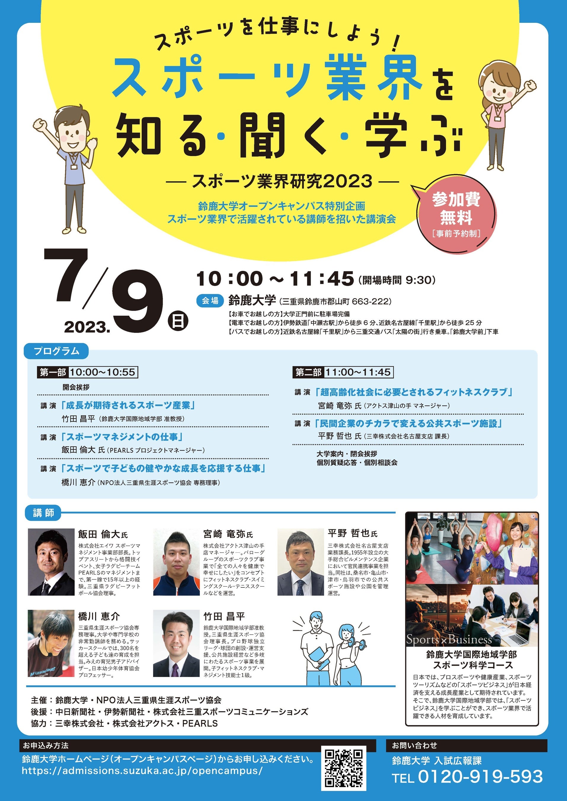 1.目的 スポーツ業界の仕事について、役立つ情報を学生に提供し、スポーツ業界で働くことに夢や希望をもてる機会とする。ひいては、三重県におけるスポーツ産業の発展に資することを目的とする。