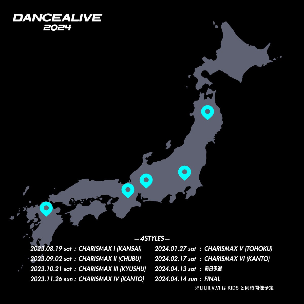 「DANCEALIVE」とは、2005年に「DANCE@LIVE(ダンスアライブ)」として日本で誕生した、1on1形式の世界最大規模のストリートダンスバトルです。カテゴリーは6つのダンススタイルごとに分かれており、HOUSE(ハウス)・BREAKING(ブレイキン)・HIPHOP(ヒップホップ)・ALL STYLES(オールスタイルズ)の計4スタイルが一般部門。加えて中学生以下の部門であるオールスタイルズバトルのKIDS(キッズ)、大学・専門学校生部門のRIZE(ライズ)に分かれています。国内外のダンサーが参加し、延べ1万人の参加を誇る予選を勝ち上がったダンサーのみが、両国国技館で行われるFINAL(決勝大会)へと勝ち進むことができ、毎年ストリートダンス界の日本最強ヒーローを生み出し続けています。FINALは、12,000人以上のダンサー・ダンスファンが来場し、年に一度のストリートダンスのビッグフェスとして老若男女に親しまれています。