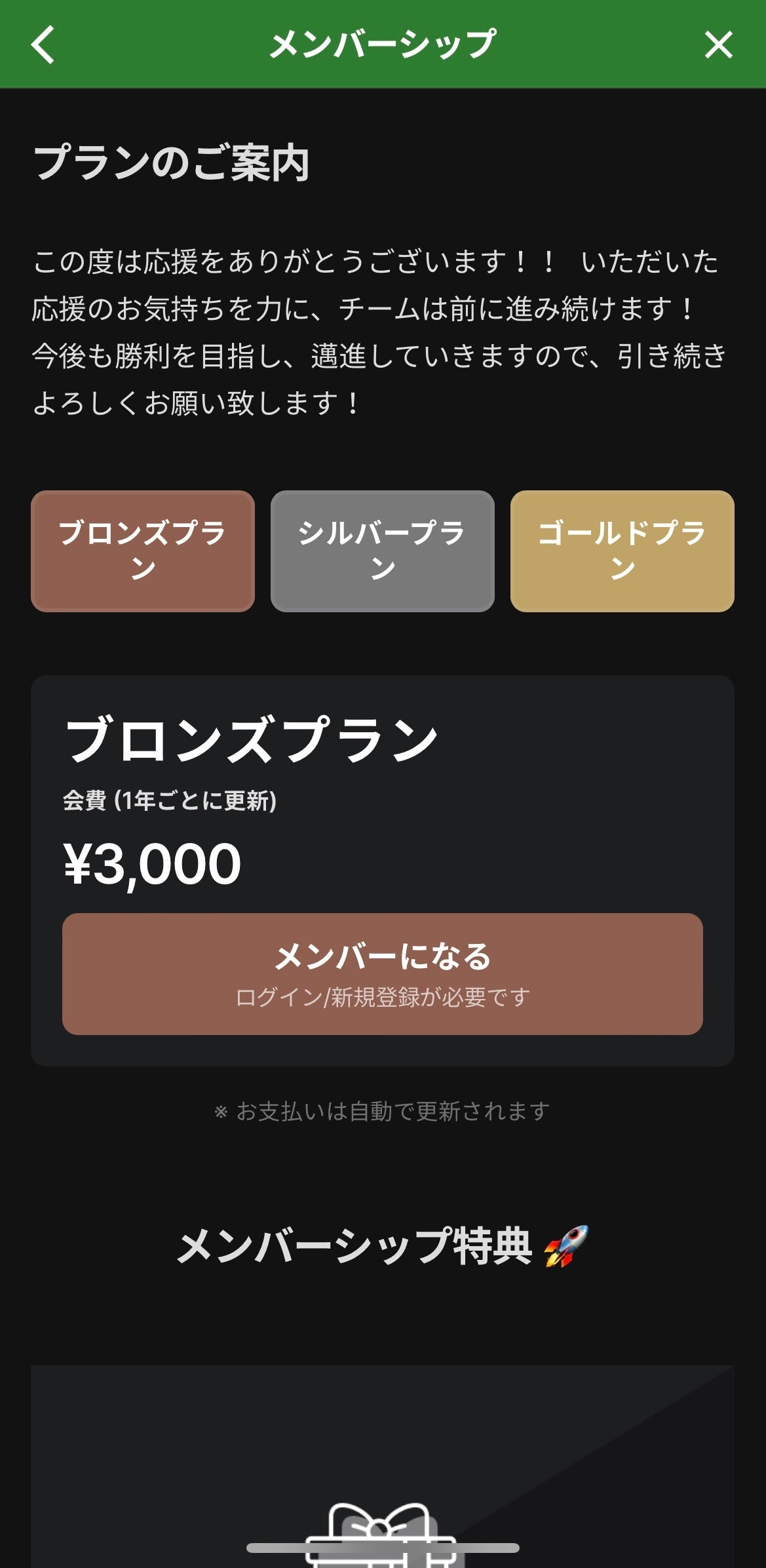 メンバーシップ機能からファンクラブ会員になって頂くと、チームから特別なグッズをお届けします!