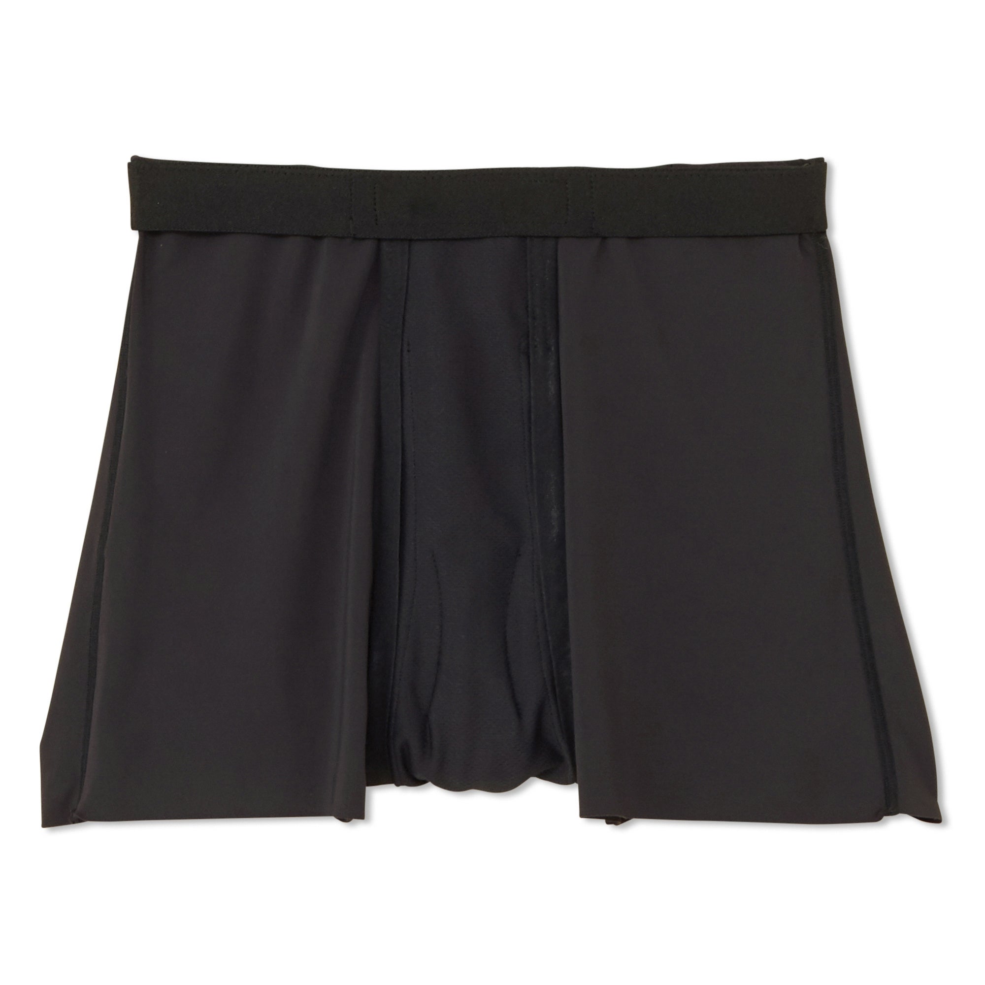 そこで、動作による横漏れや後ろ漏れをケアするために、ストレッチ性に優れ、身体を締め付けることなくしっかりフィットする素材を使用し、動き易いボクサータイプを採用しました。また、ショーツのウエスト部分から背面までをカバーしてくれるハンモック型の吸水面は、ショーツ本体と分離させたことで、お尻や足を動かしてもズレにくく身体に追従してくれて、漏れの心配も少なく快適な着用感が維持できます。さらに、お尻の割れ目にフィットする凹凸を施すことで後ろ漏れを軽減しました。ボタンで着脱できる仕様のため、吸水面を取り外して洗うことができ、お手入れも簡単で衛生的です。ショーツのラインが気にならないよう、レギンスをはいても段差が出にくいフリーカットに仕立て、内側の縫い目も肌に直接触れない縫製仕様を駆使して仕上げています。