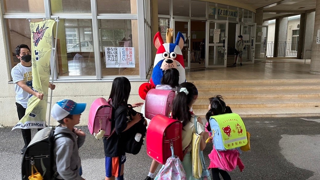 少しずつ夏の暑さを感じながらも、子ども達は新学期にも慣れた様子で、元気いっぱいあいさつを返してくれました。今後も沖縄バスケットボール株式会社グループ一同、地域の皆さまとの交流を通じ沖縄に根ざした活動を行なってまいります。