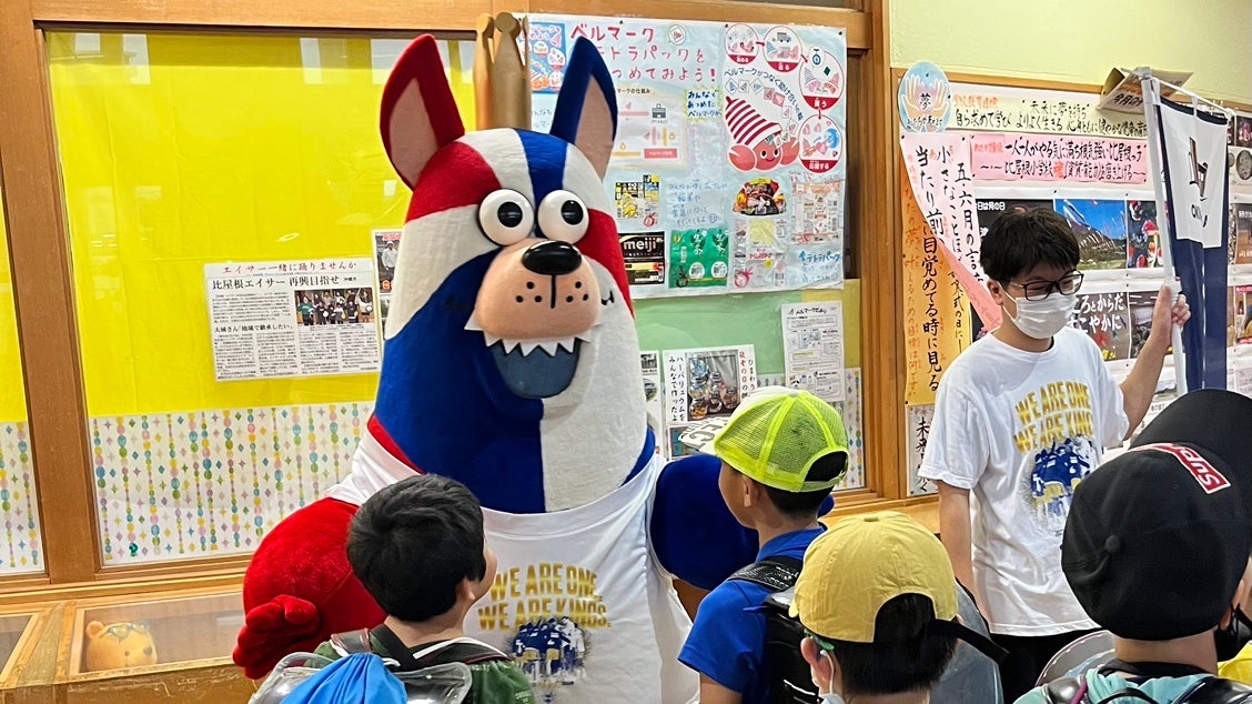 「おおきなわ」の活動の一環として行っている「ゴーディーによる朝のあいさつ運動」にて、5月はホームタウン沖縄市内の小中学校(10校)にて朝のあいさつ運動に参加しました。ご協力いただいた各小学校の皆さま、ありがとうございました。