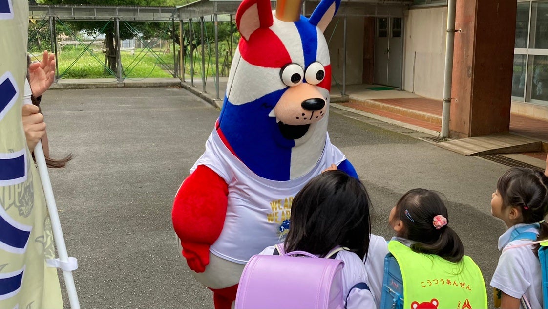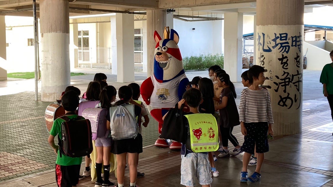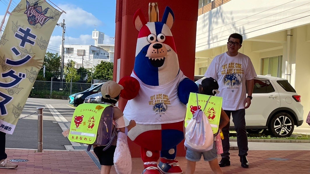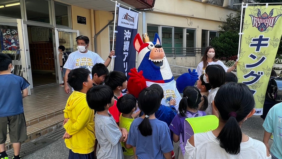 少しずつ夏の暑さを感じながらも、子ども達は新学期にも慣れた様子で、元気いっぱいあいさつを返してくれました。今後も沖縄バスケットボール株式会社グループ一同、地域の皆さまとの交流を通じ沖縄に根ざした活動を行なってまいります。