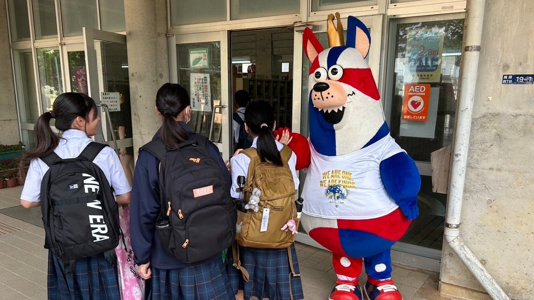 「おおきなわ」の活動の一環として行っている「ゴーディーによる朝のあいさつ運動」にて、5月はホームタウン沖縄市内の小中学校(10校)にて朝のあいさつ運動に参加しました。ご協力いただいた各小学校の皆さま、ありがとうございました。