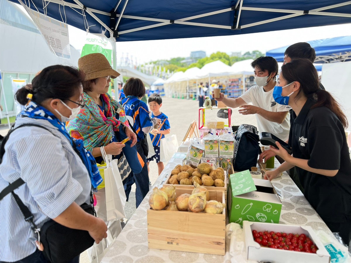 店頭では、生産者である中島勇太氏も接客を行い、自身の生産する農産物の魅力についてサポーターである消費者との交流や雑談など、当社のミッションである「生産者と消費者の思考と嗜好を繋ぐ」を体現いたしました。農産物プレゼント企画では、新鮮な農産物の色合い・香りに「美味しそう!」と多くの笑顔の花が会場に咲きました。