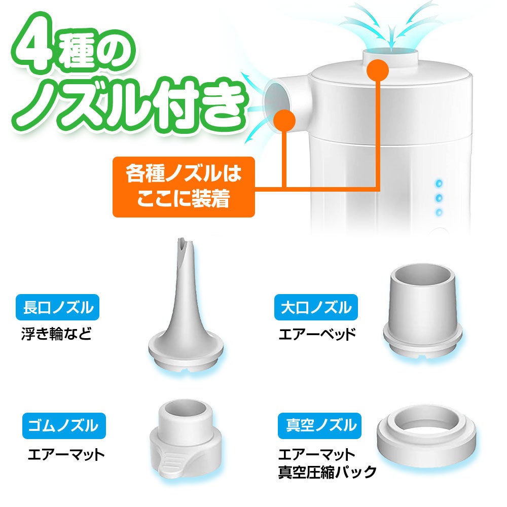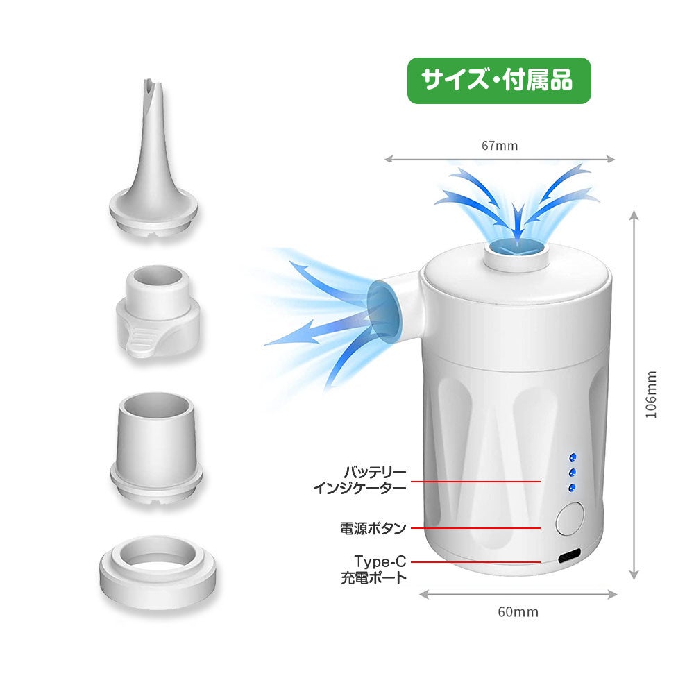 手動で浮き輪などに空気を入れていた煩わしさが解消されます。